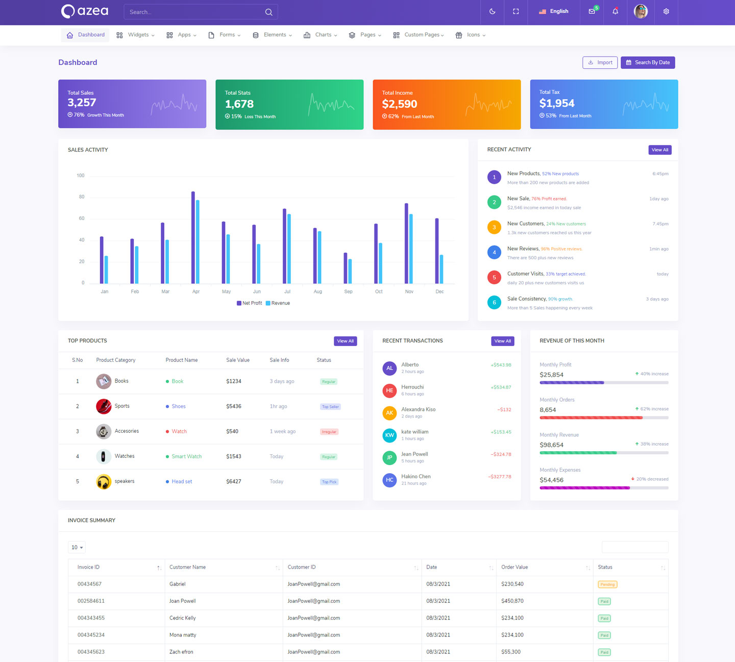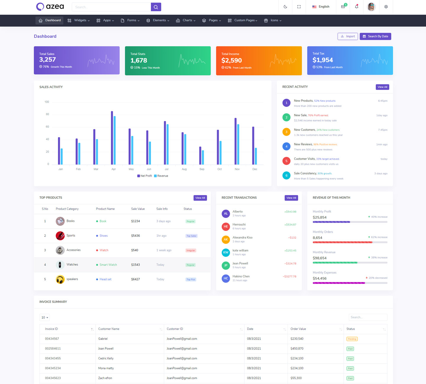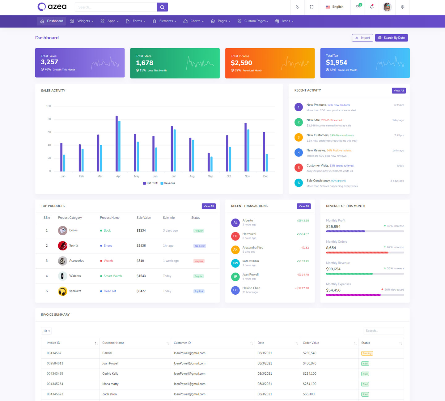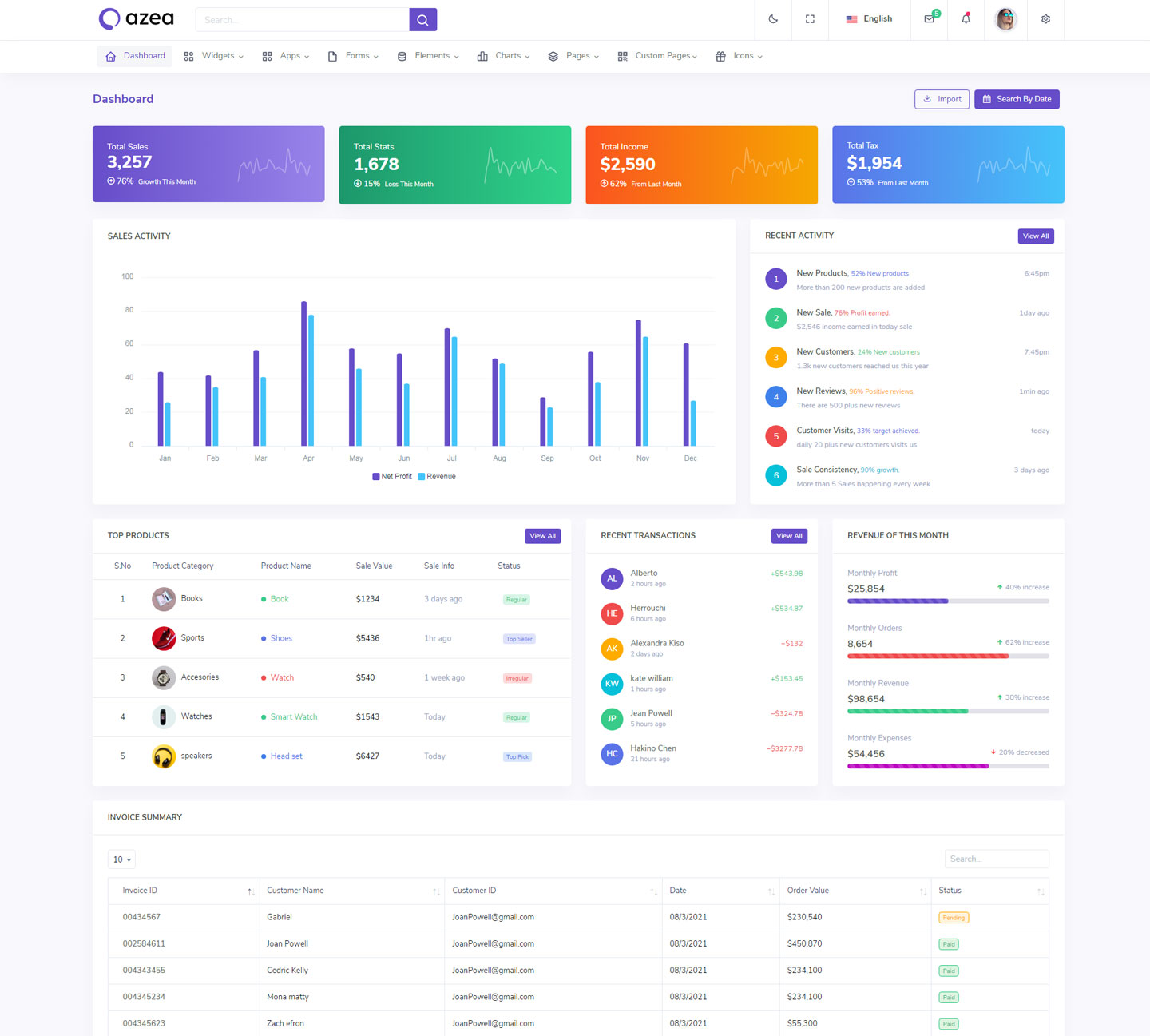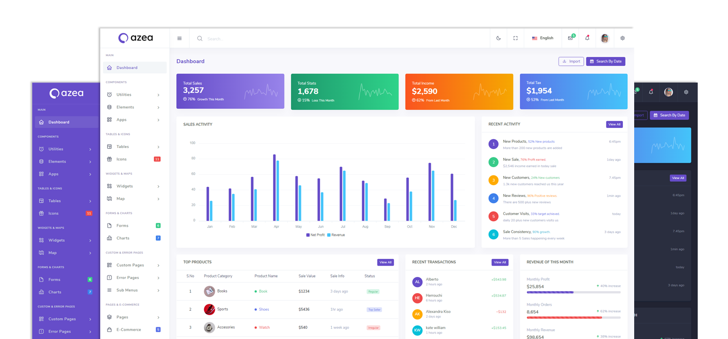 Explore the latest trending features incorporated into the Azea PHP Admin template, showcasing how we have enhanced and designed our template. When it comes to design, we always keep a close watch on the most trending features.