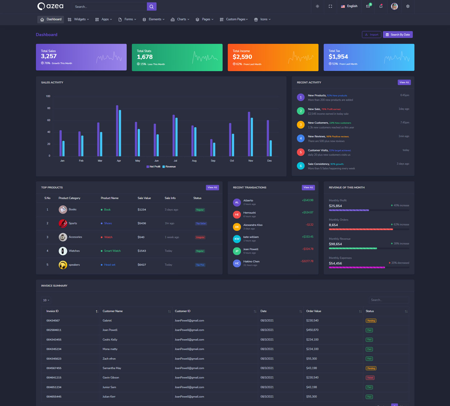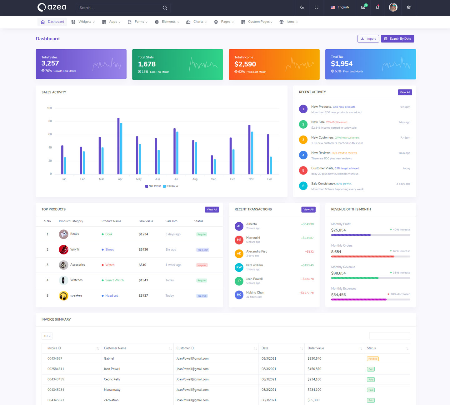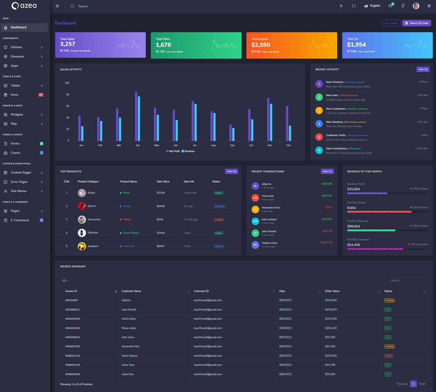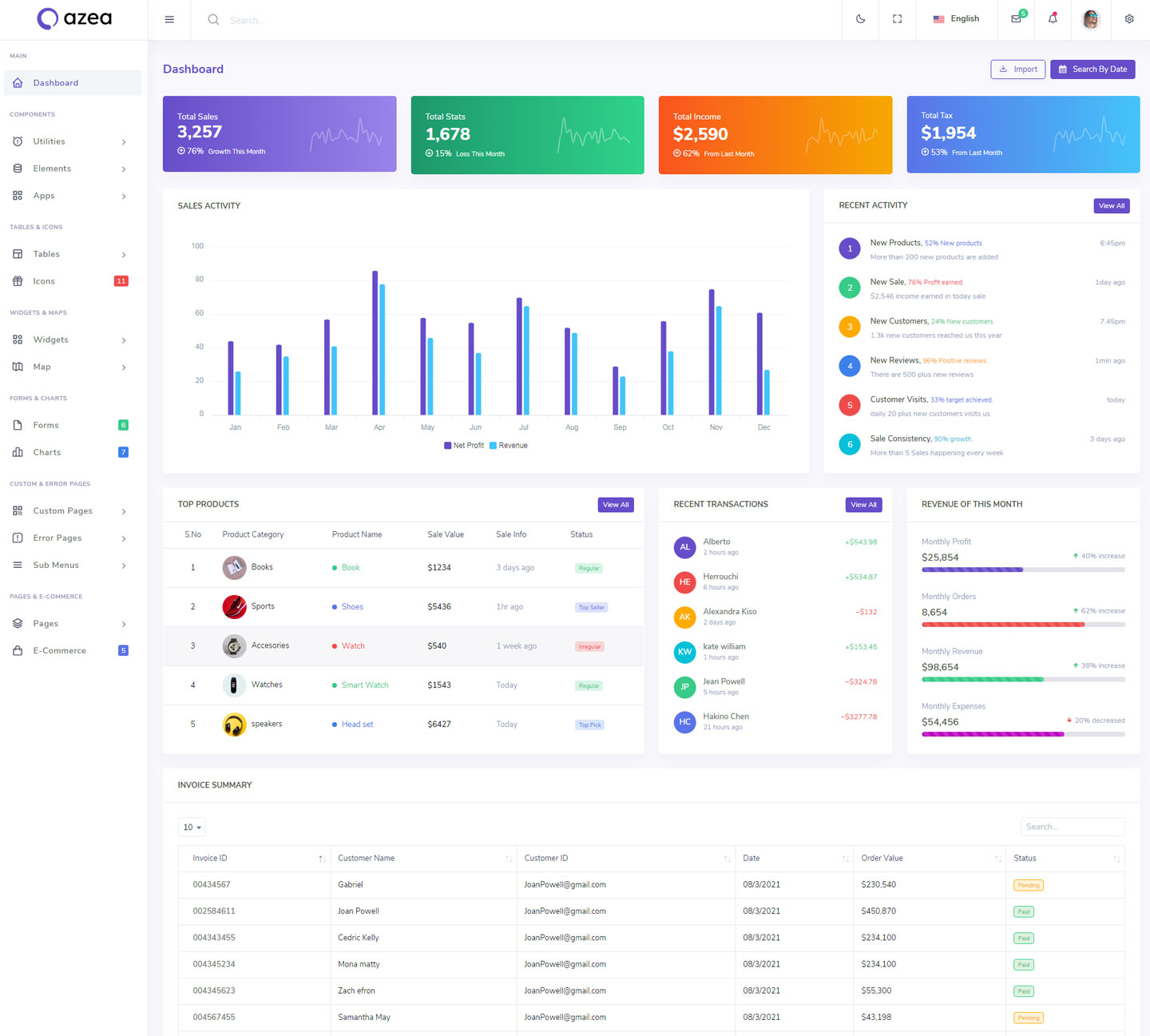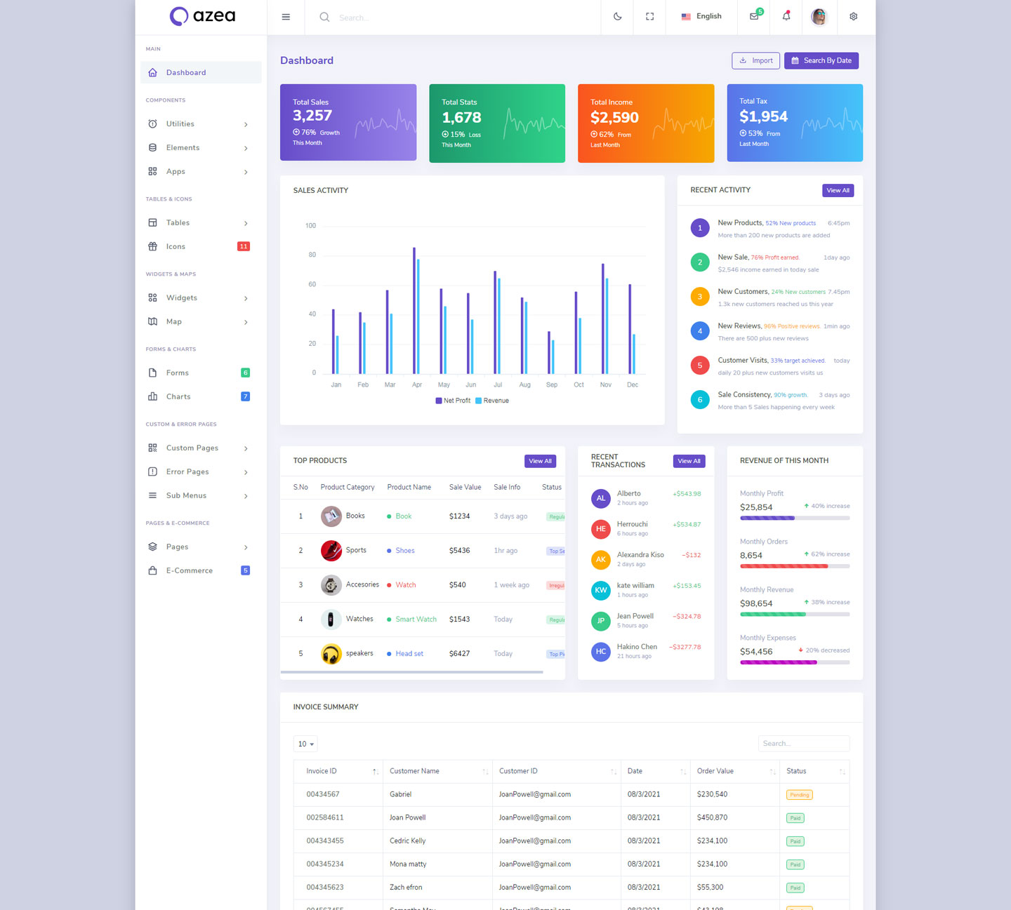 Explore the latest trending features incorporated into the Azea PHP Admin template, showcasing how we have enhanced and designed our template. When it comes to design, we always keep a close watch on the most trending features.