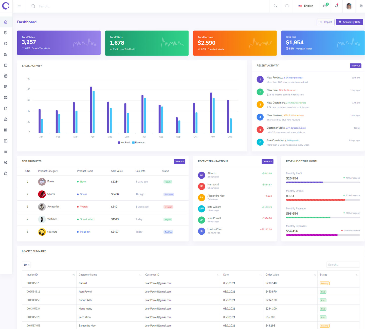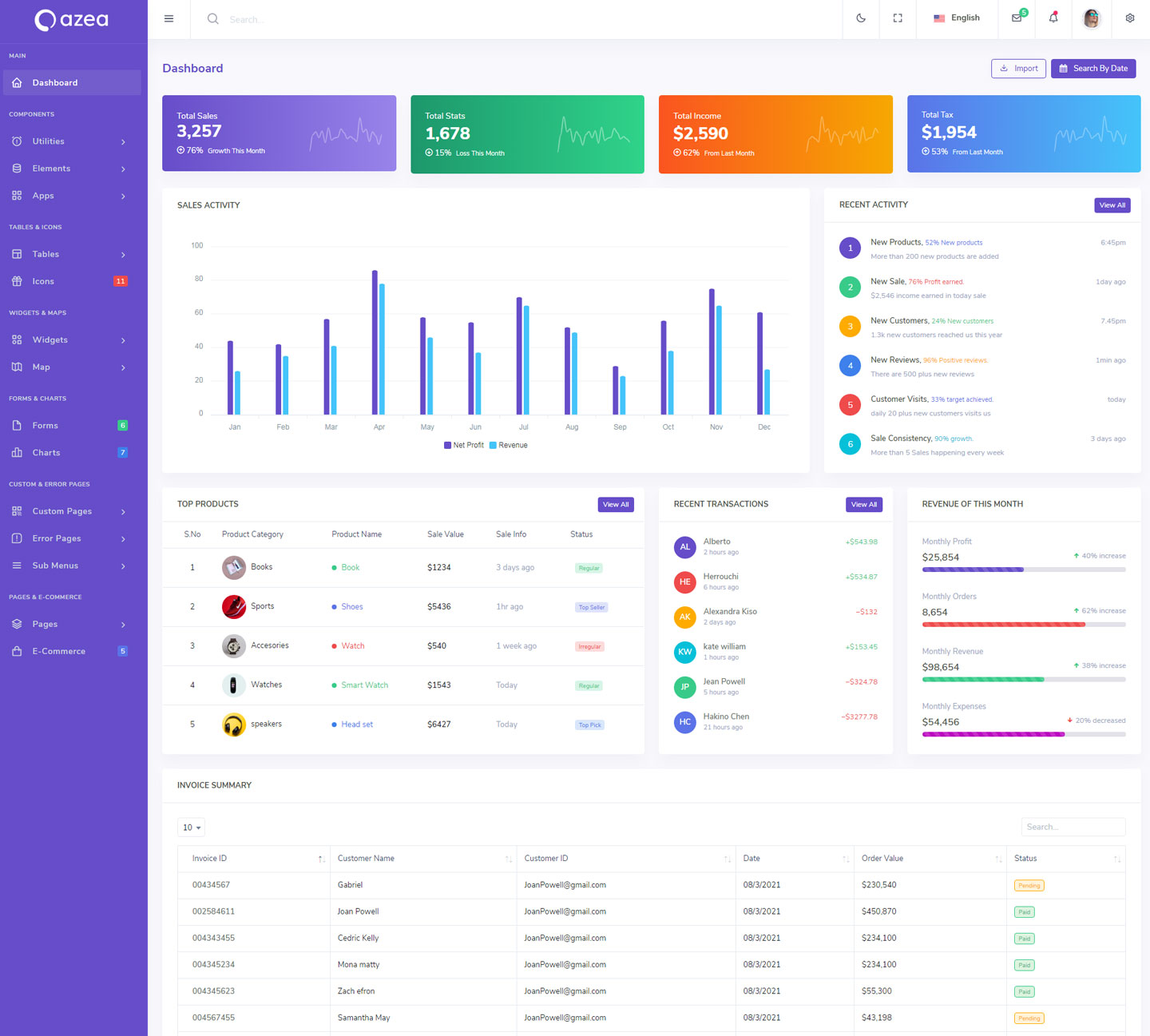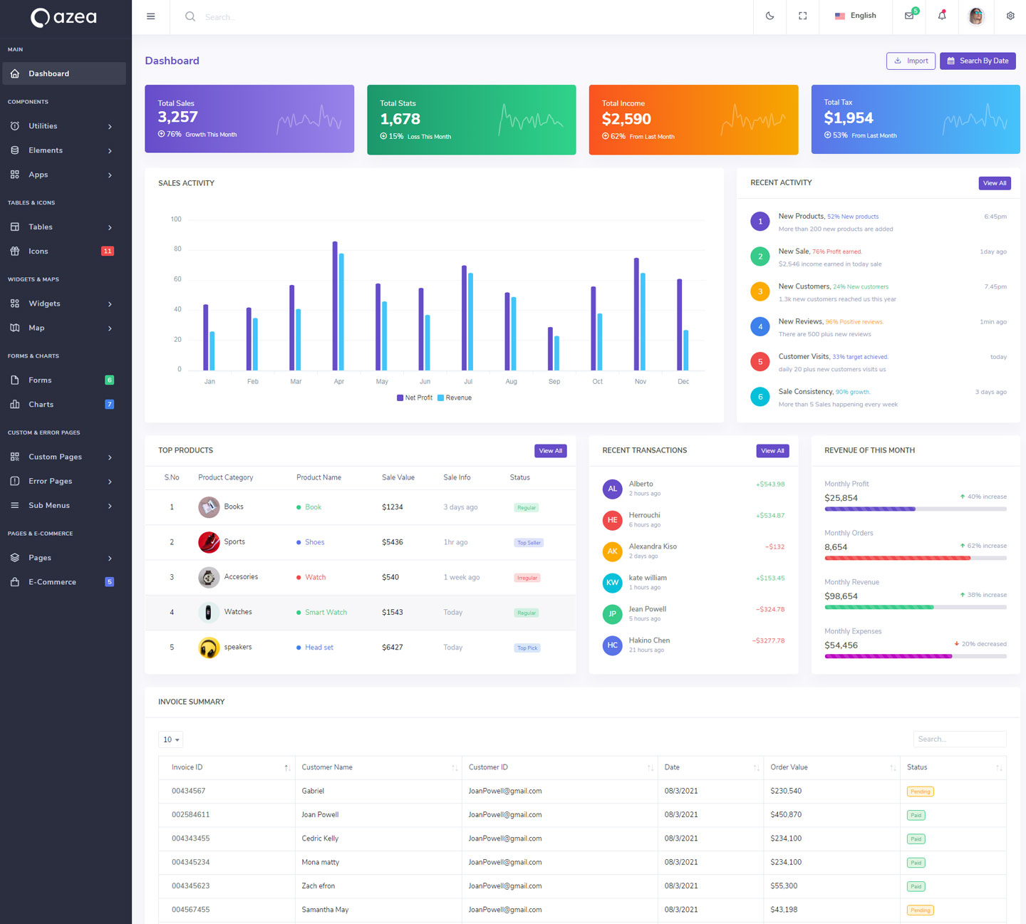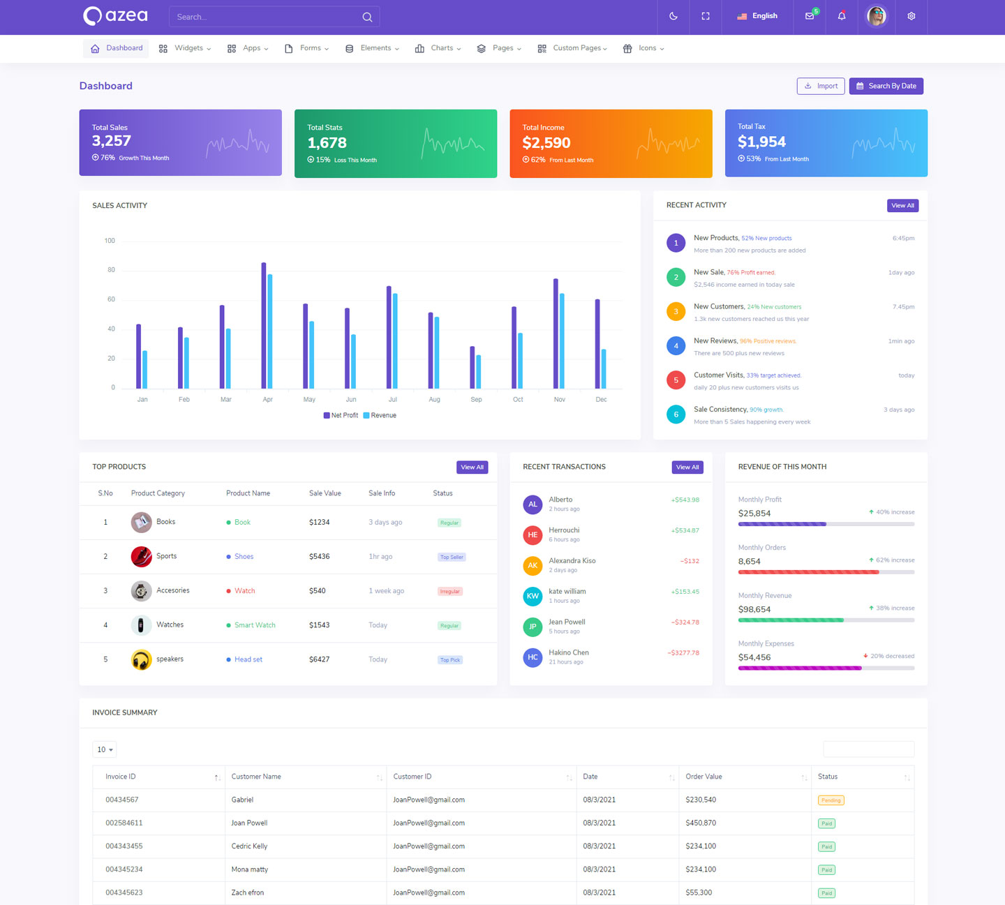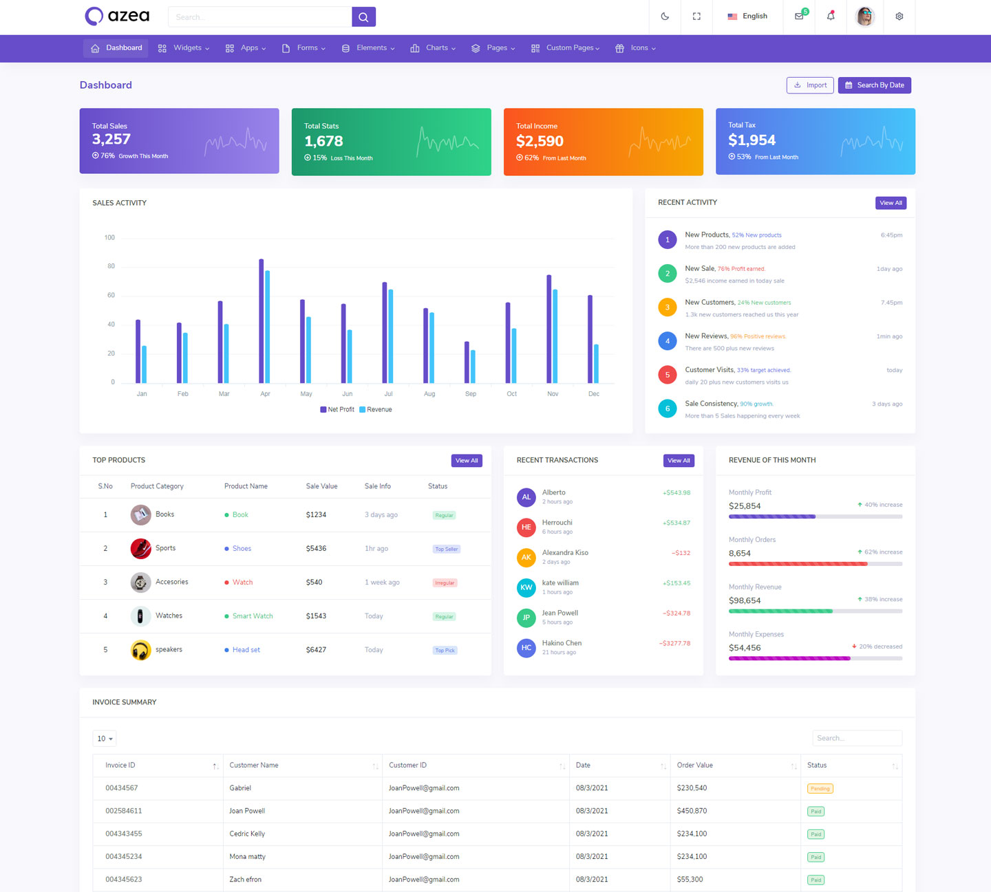 Explore the latest trending features incorporated into the Azea PHP Admin template, showcasing how we have enhanced and designed our template. When it comes to design, we always keep a close watch on the most trending features.