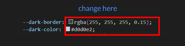 To change Dark default Color ,border color you have to open _variables.scss file in scss folder and replace what color you want as shown in below
