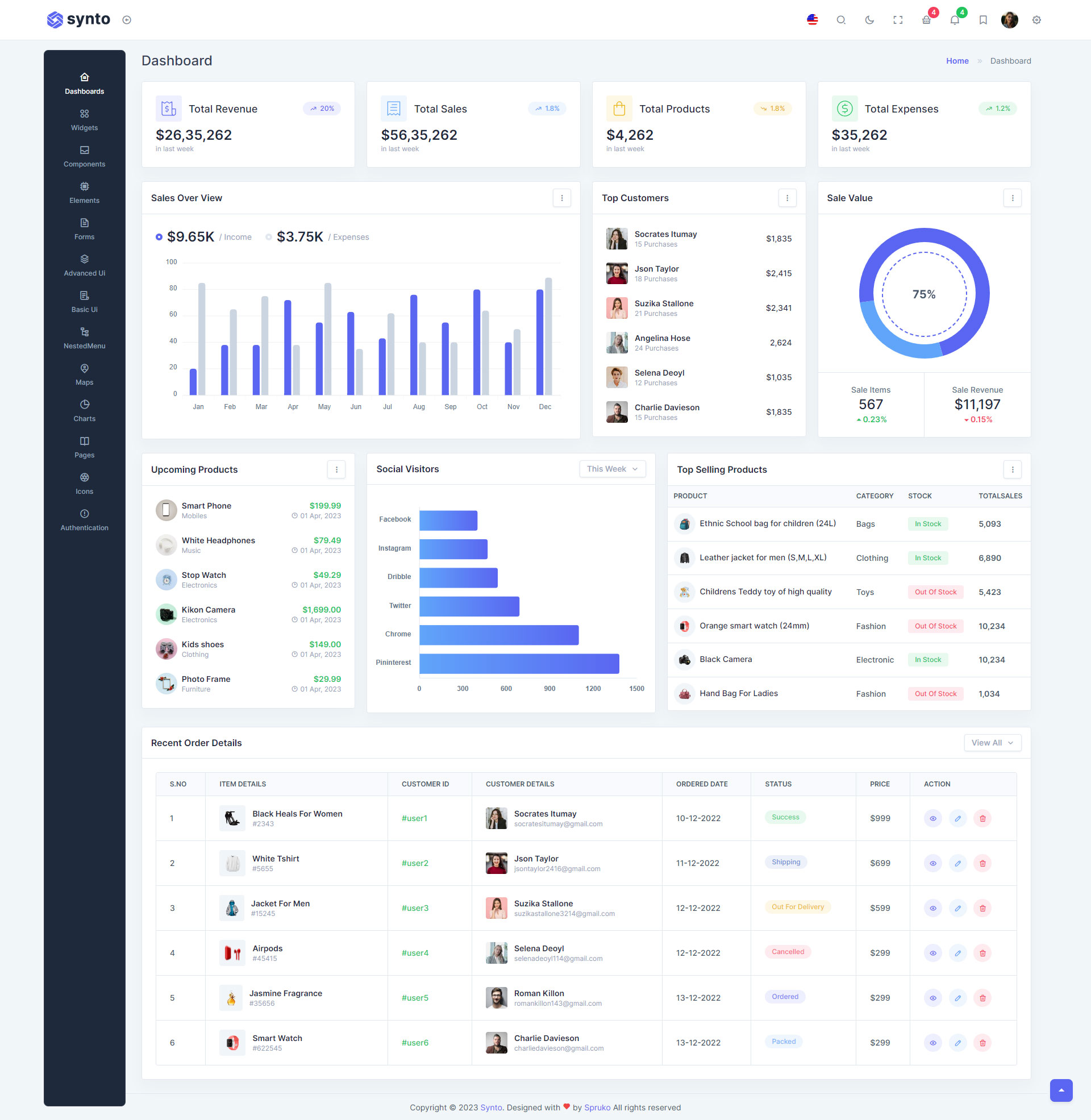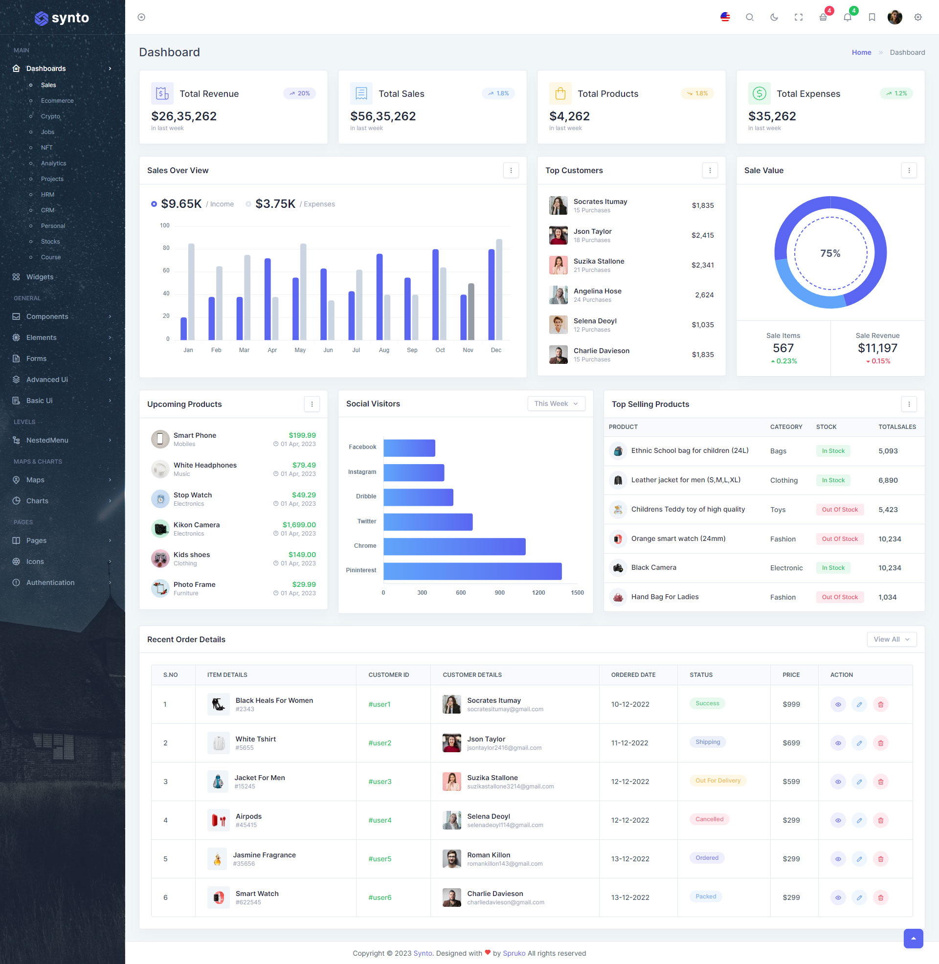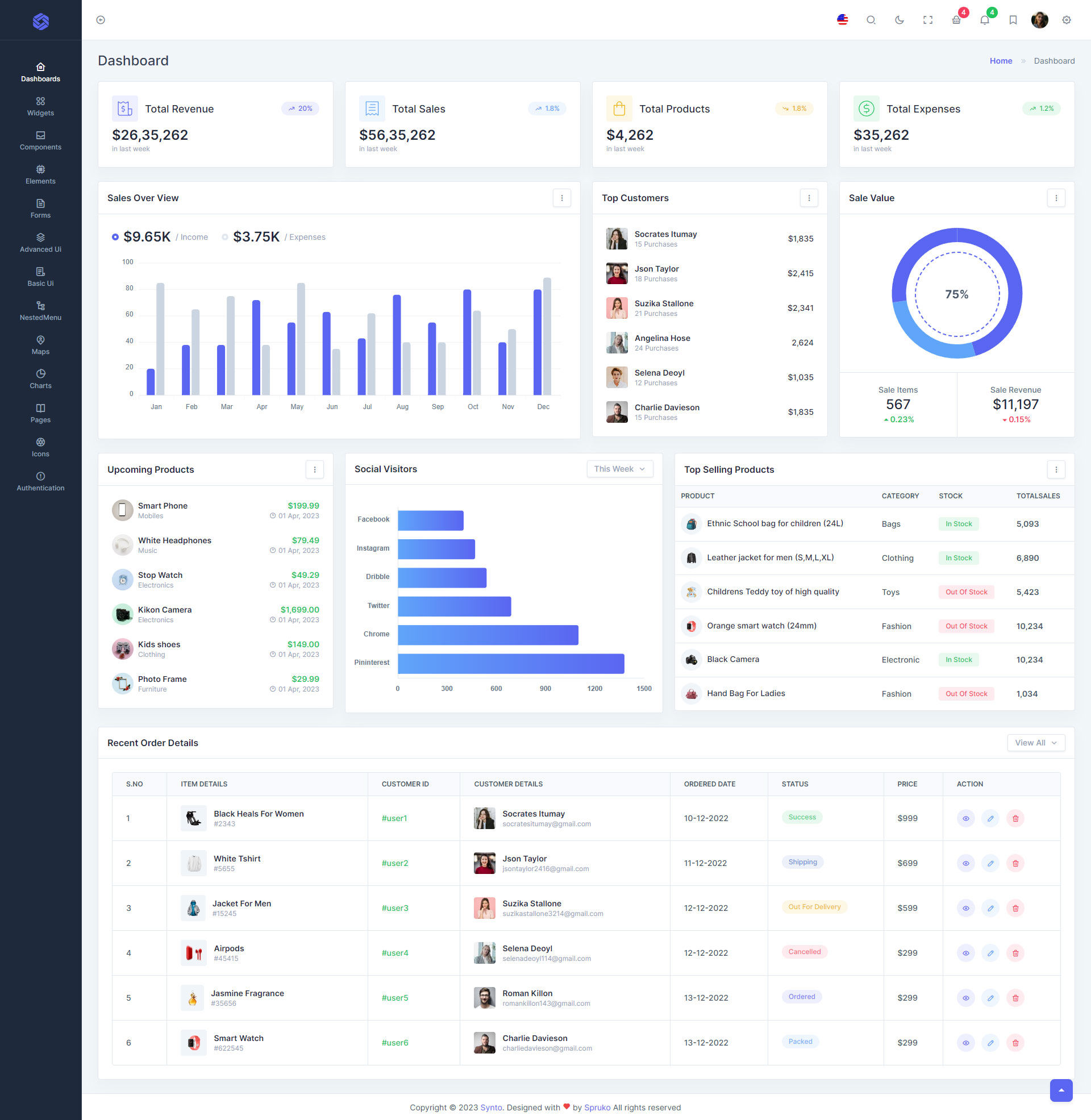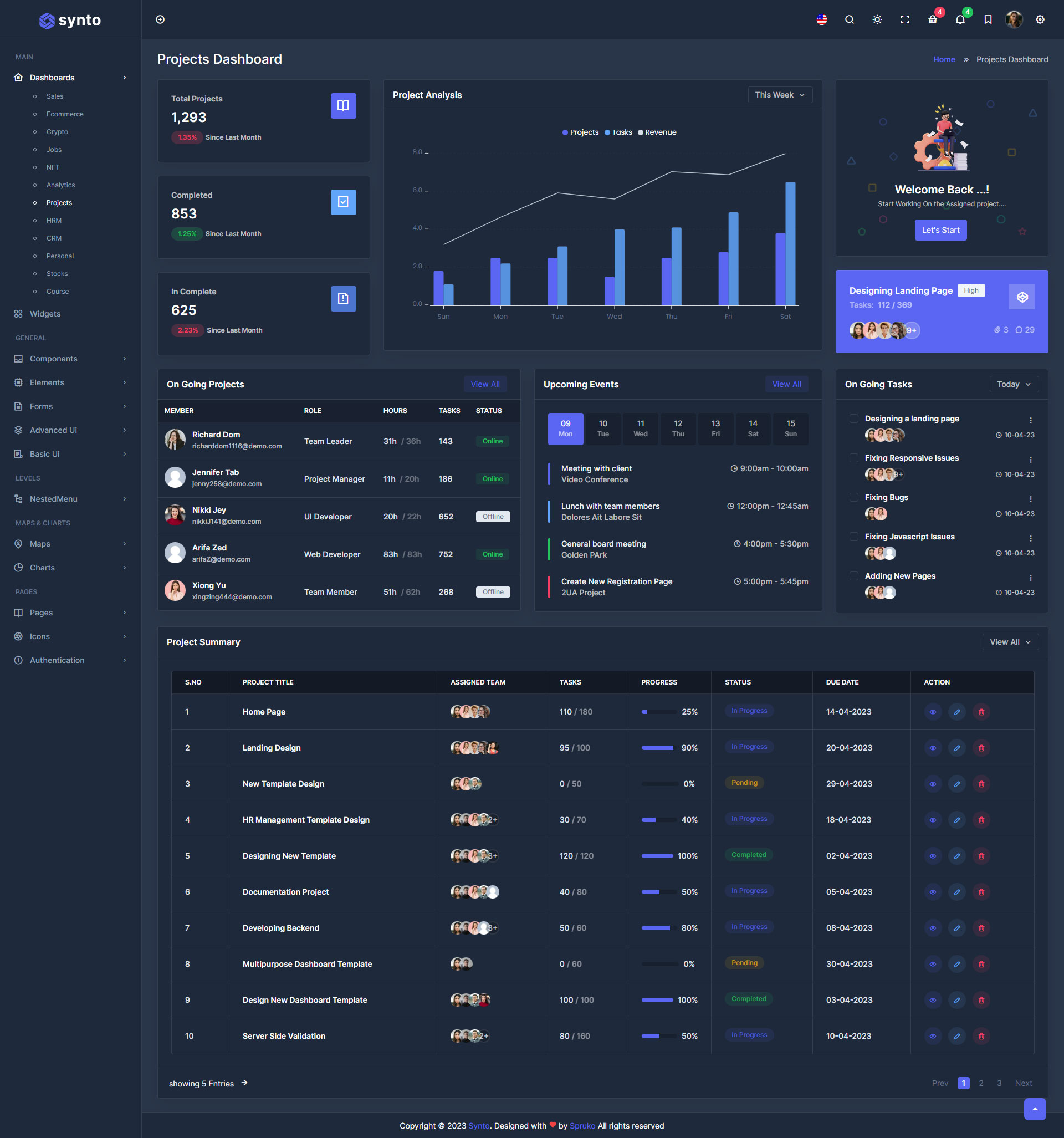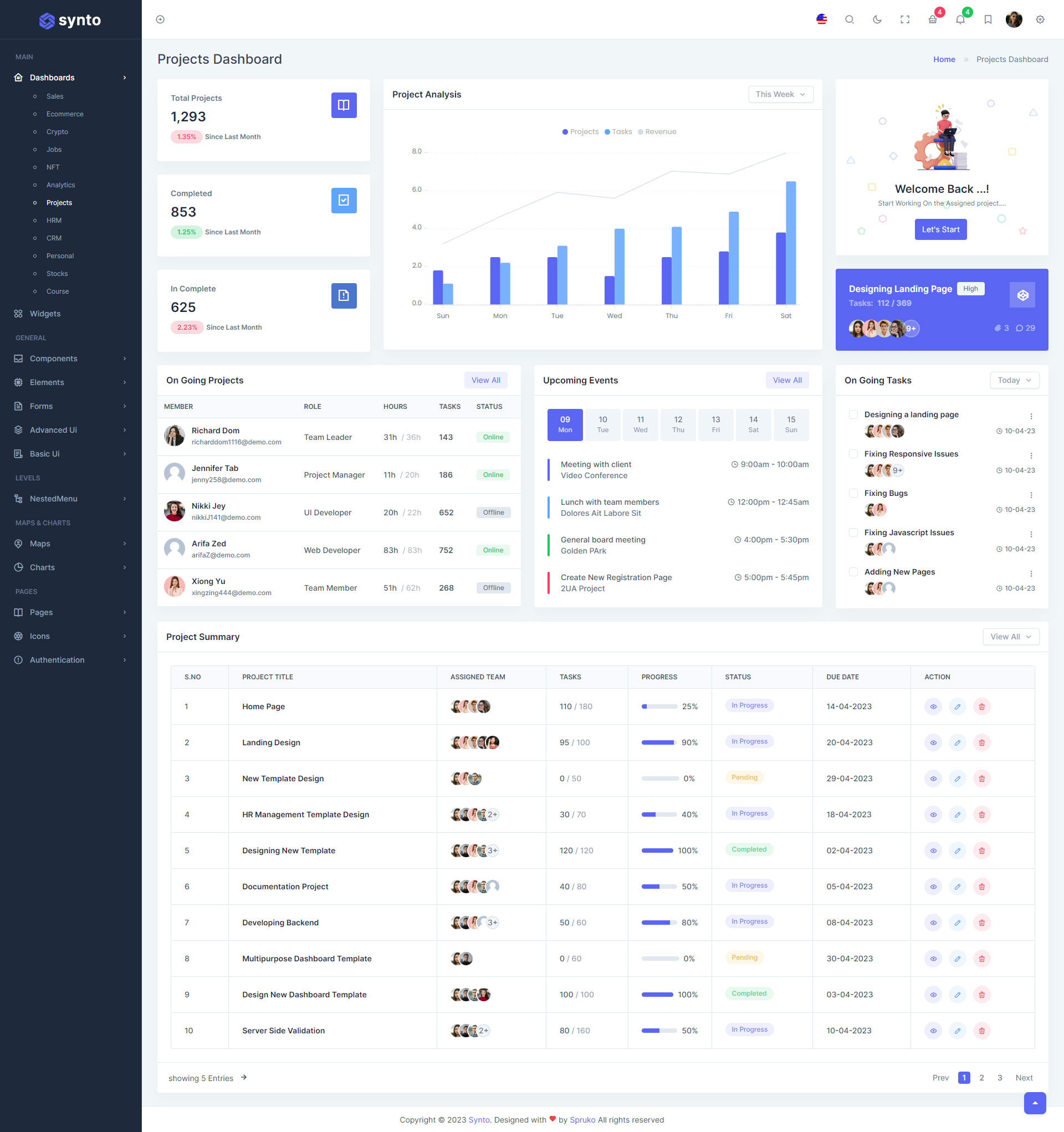 Synto PHP admin template comes with ready to use features. It has lots of readymade features saves more time for developers.