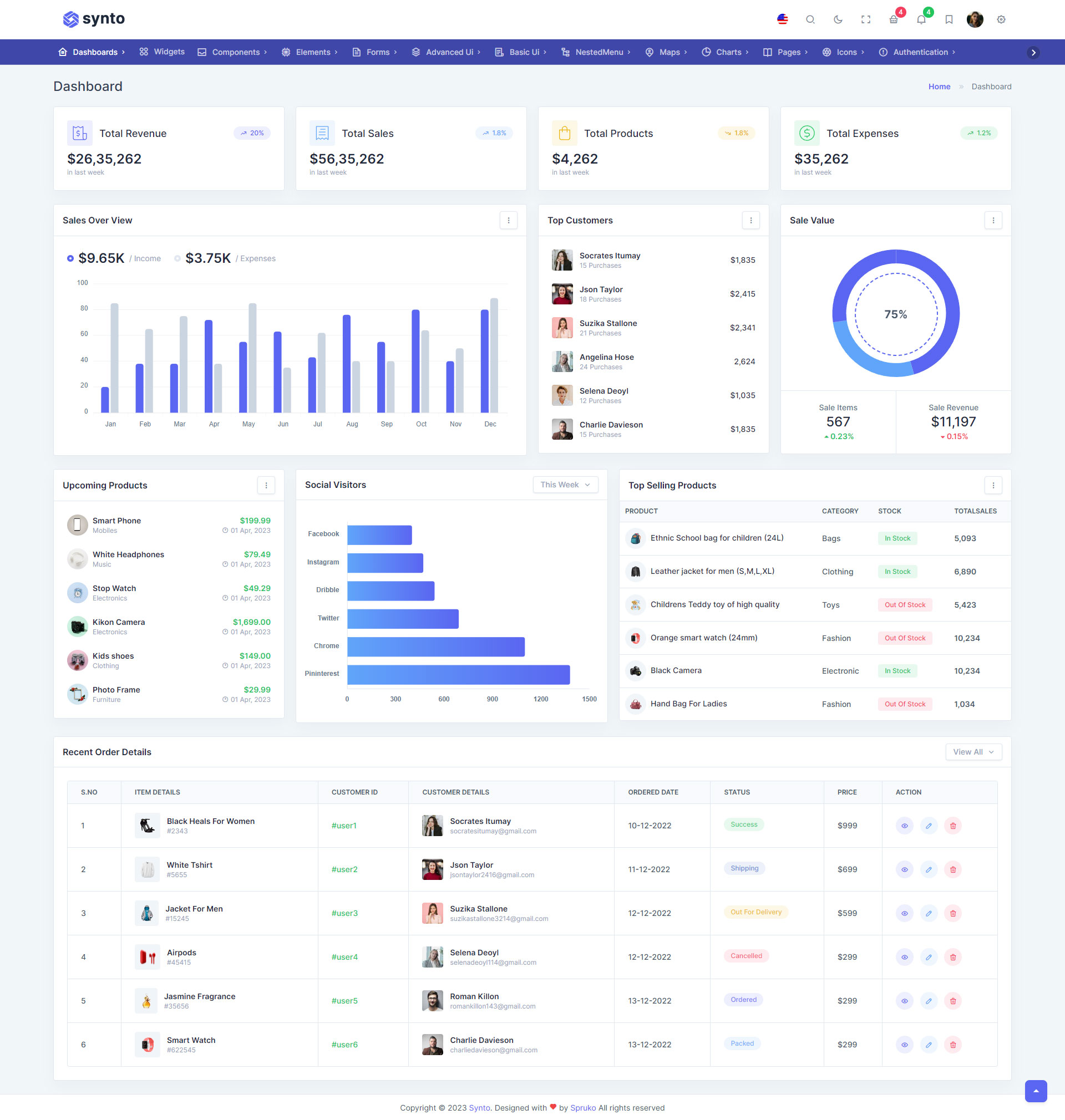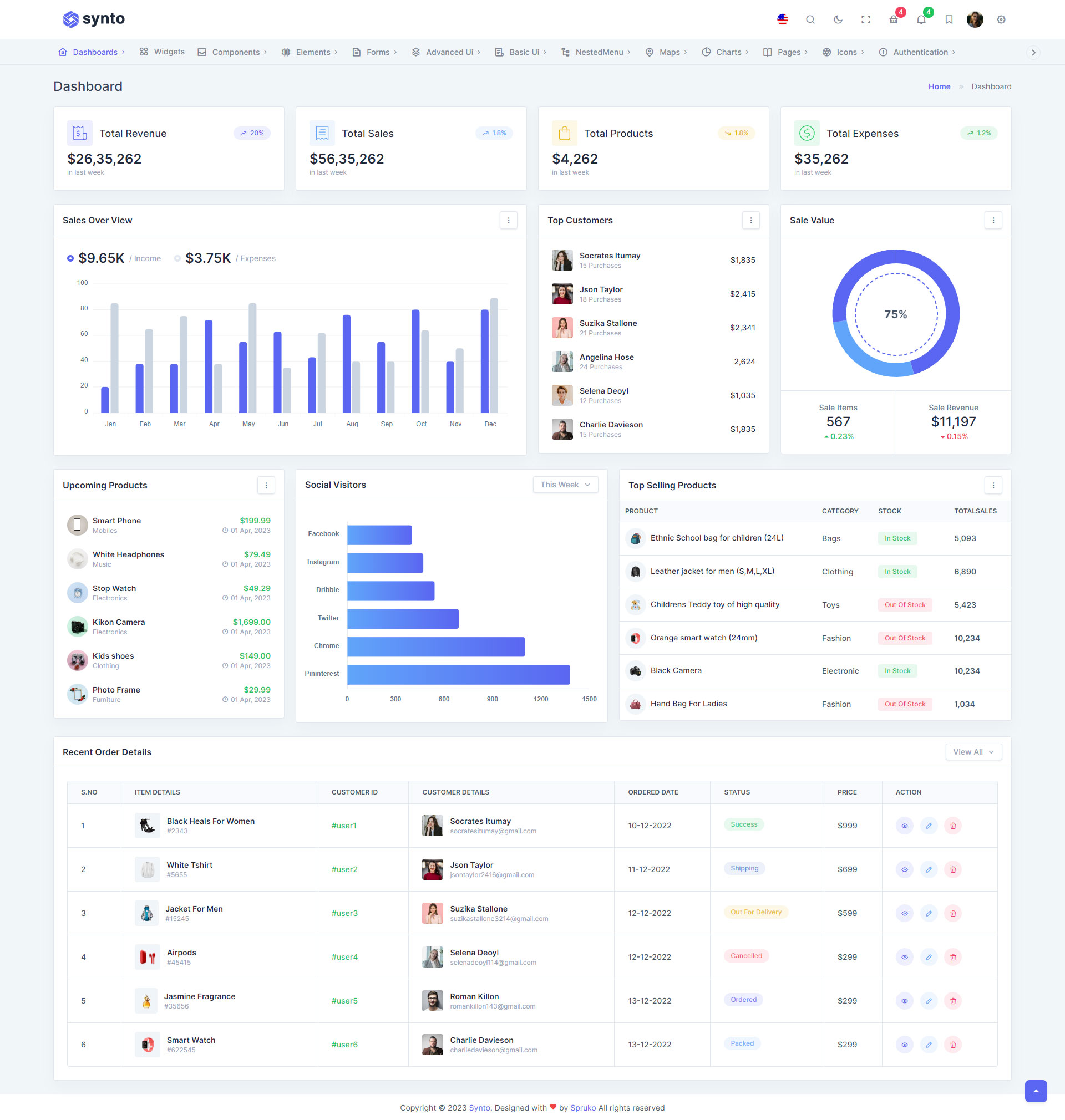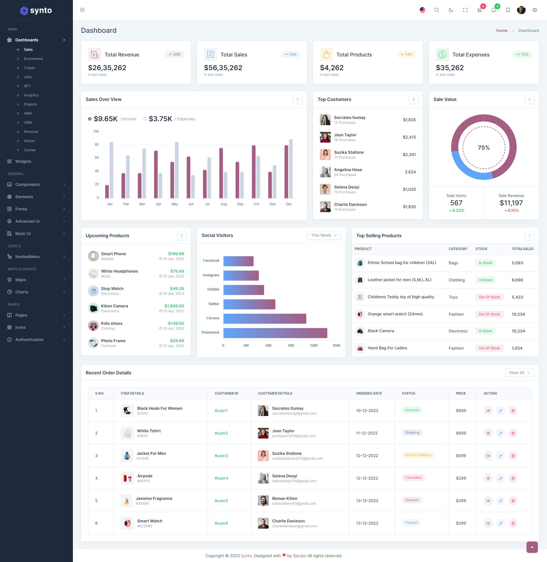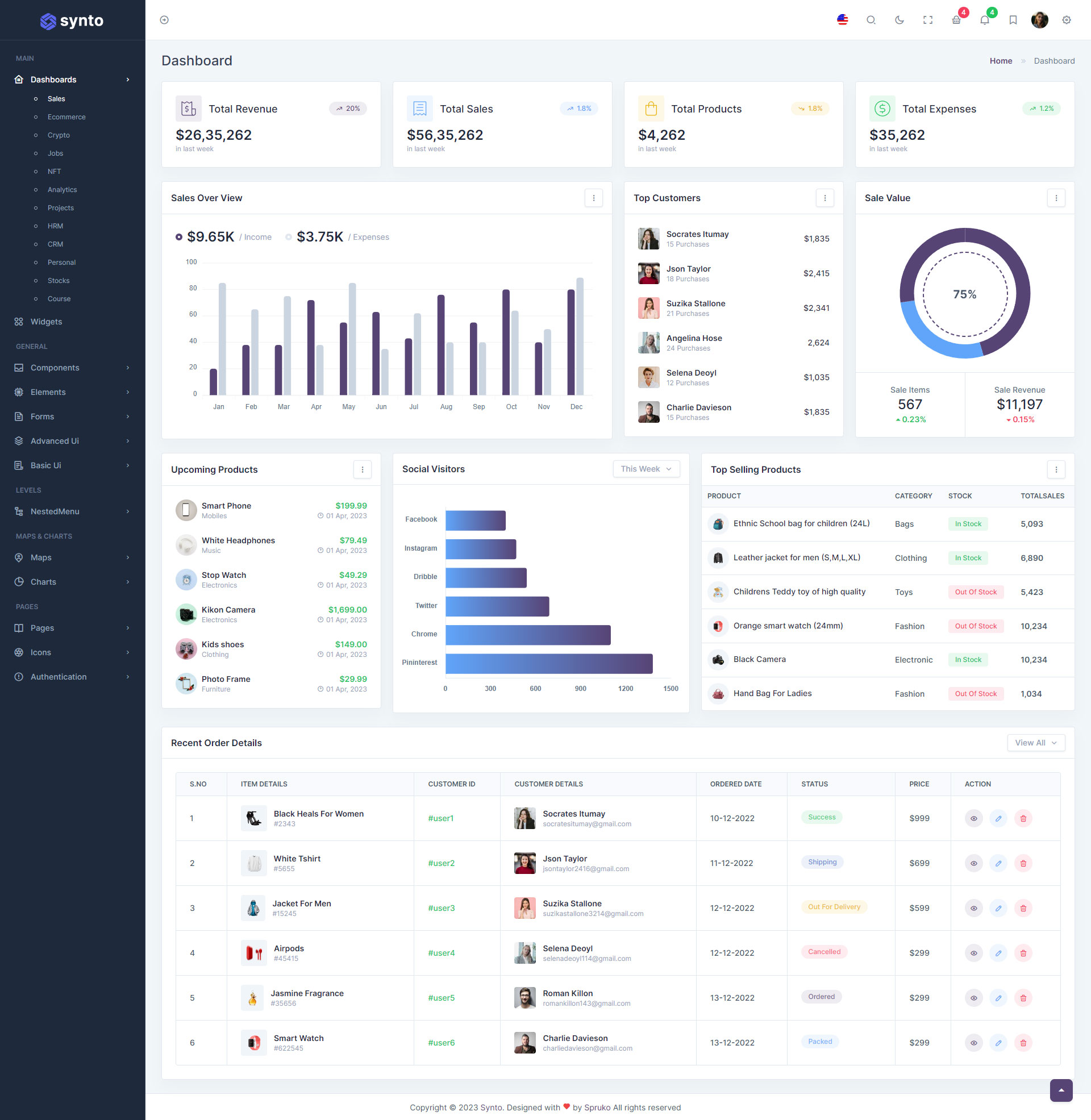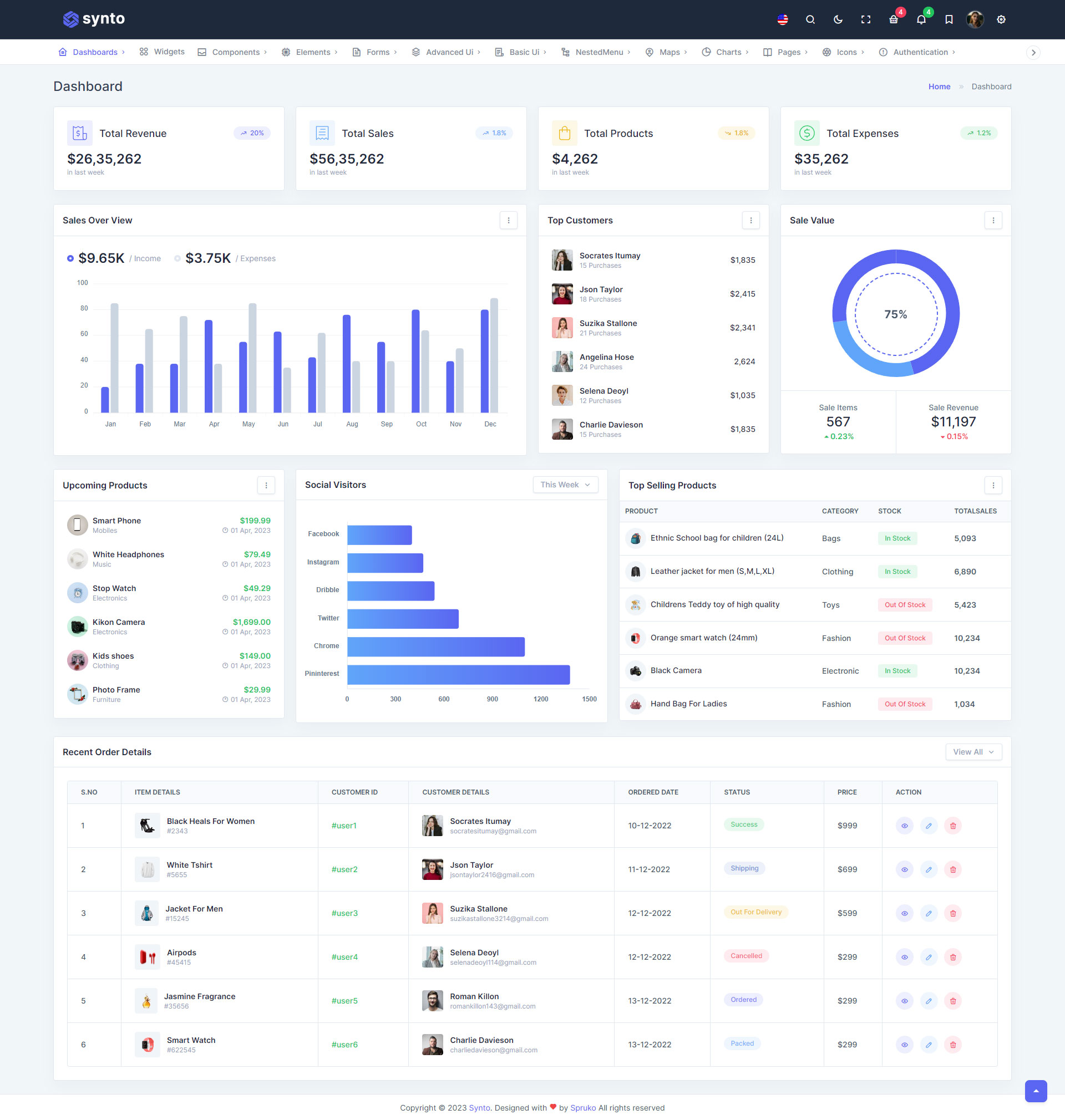 Synto PHP admin template comes with ready to use features. It has lots of readymade features saves more time for developers.