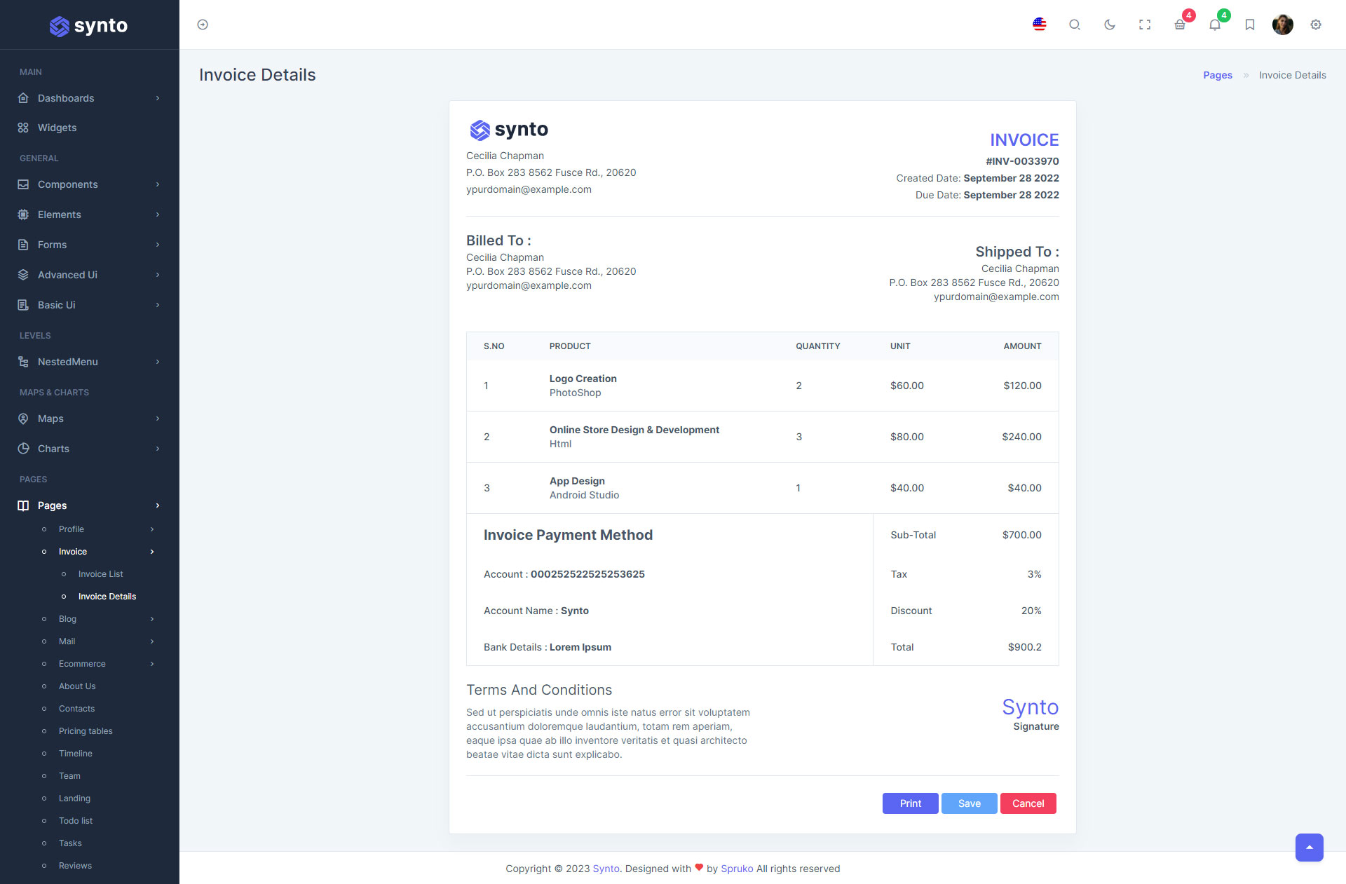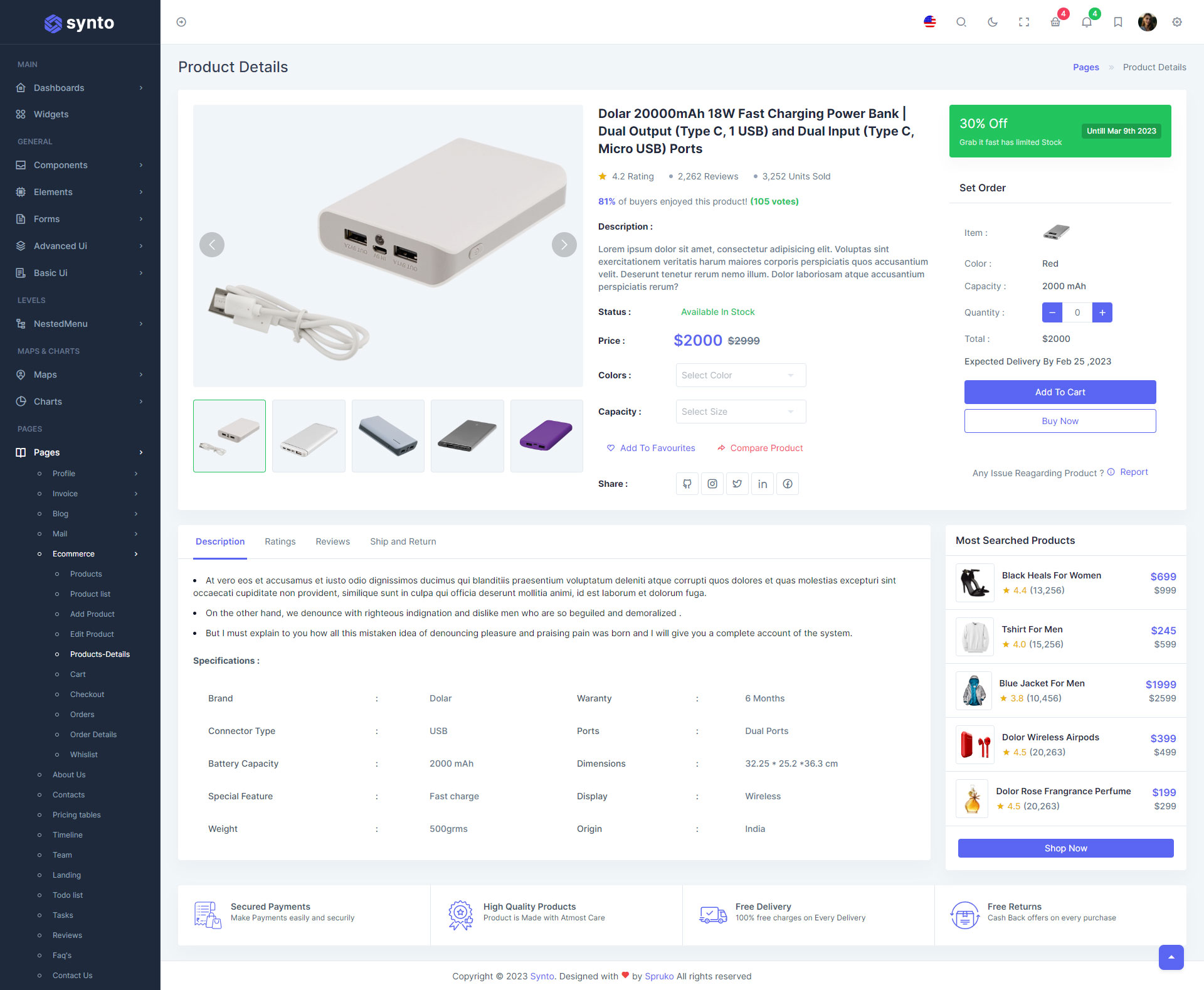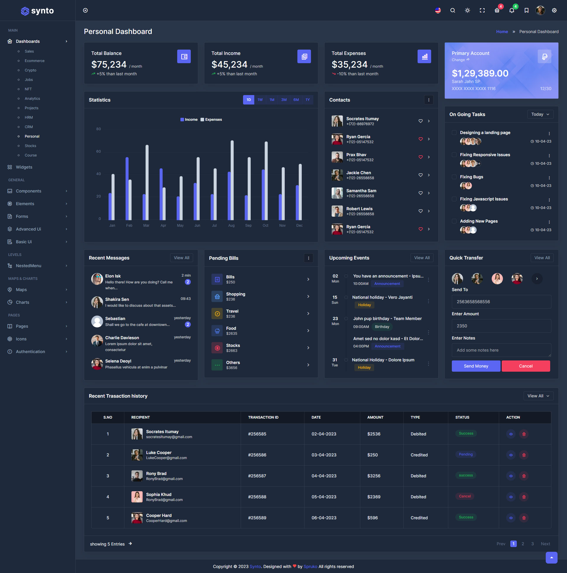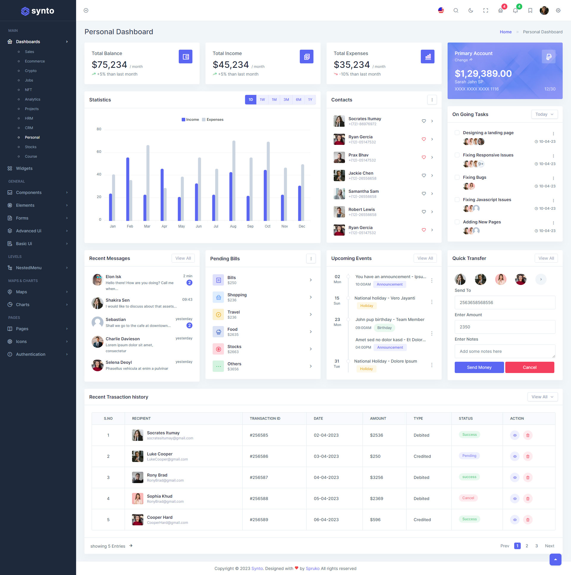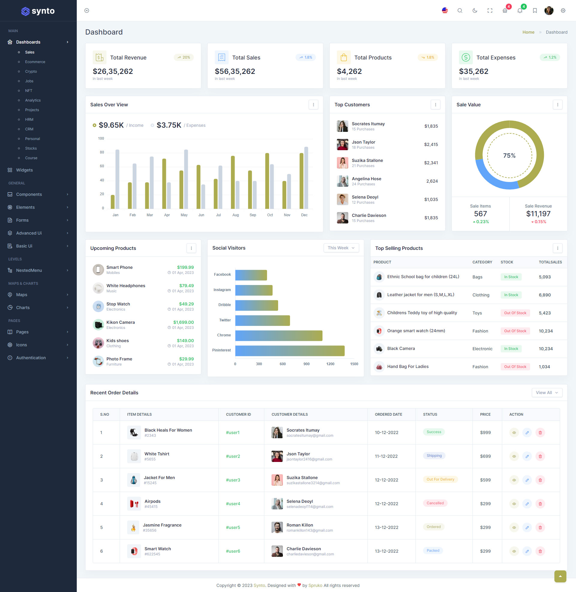 Synto PHP admin template comes with ready to use features. It has lots of readymade features saves more time for developers.