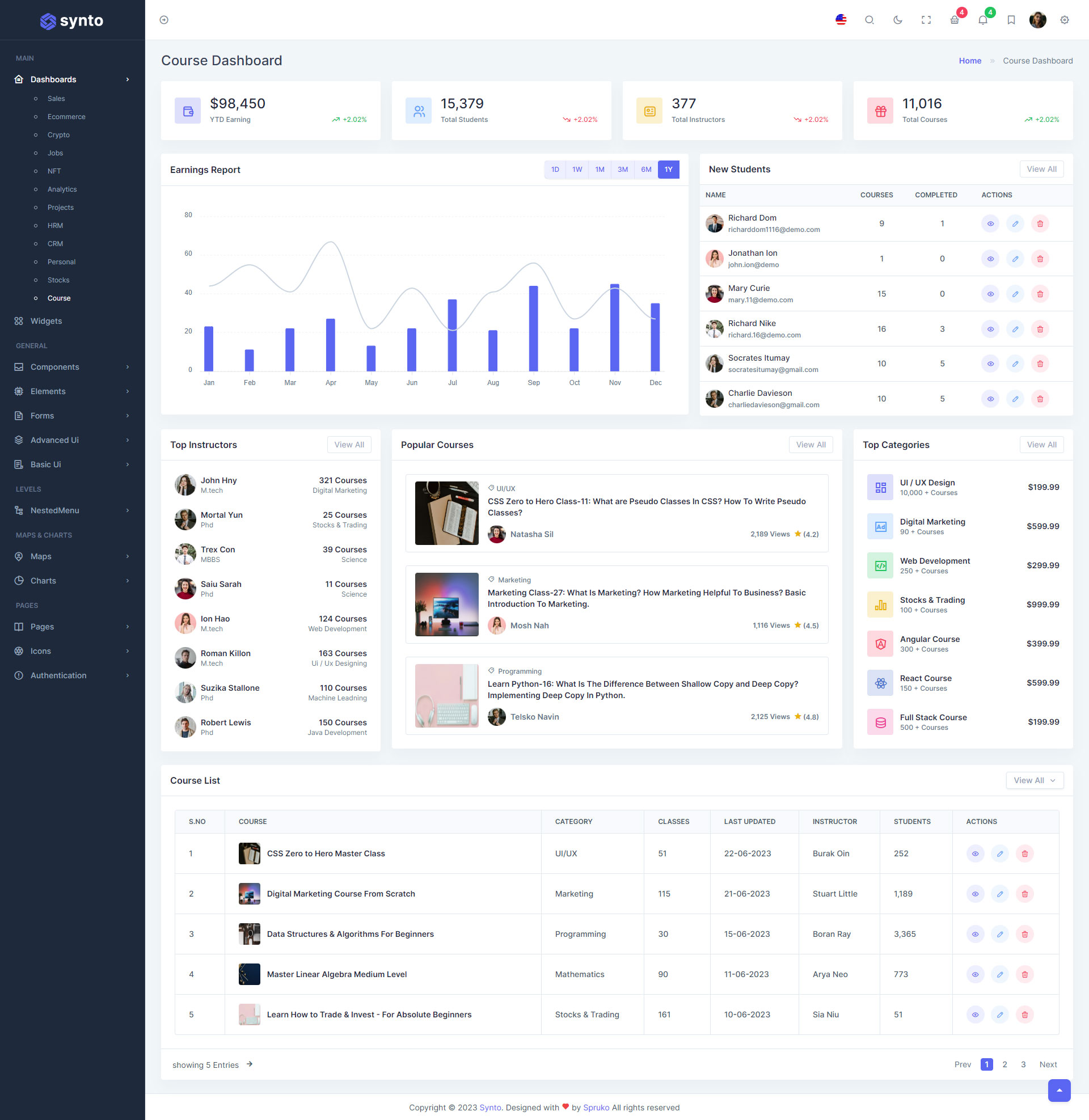 Here are some of the pages in Synto PHP admin template ui design,no need of additional customization required,designed perfectly for ready to use template.