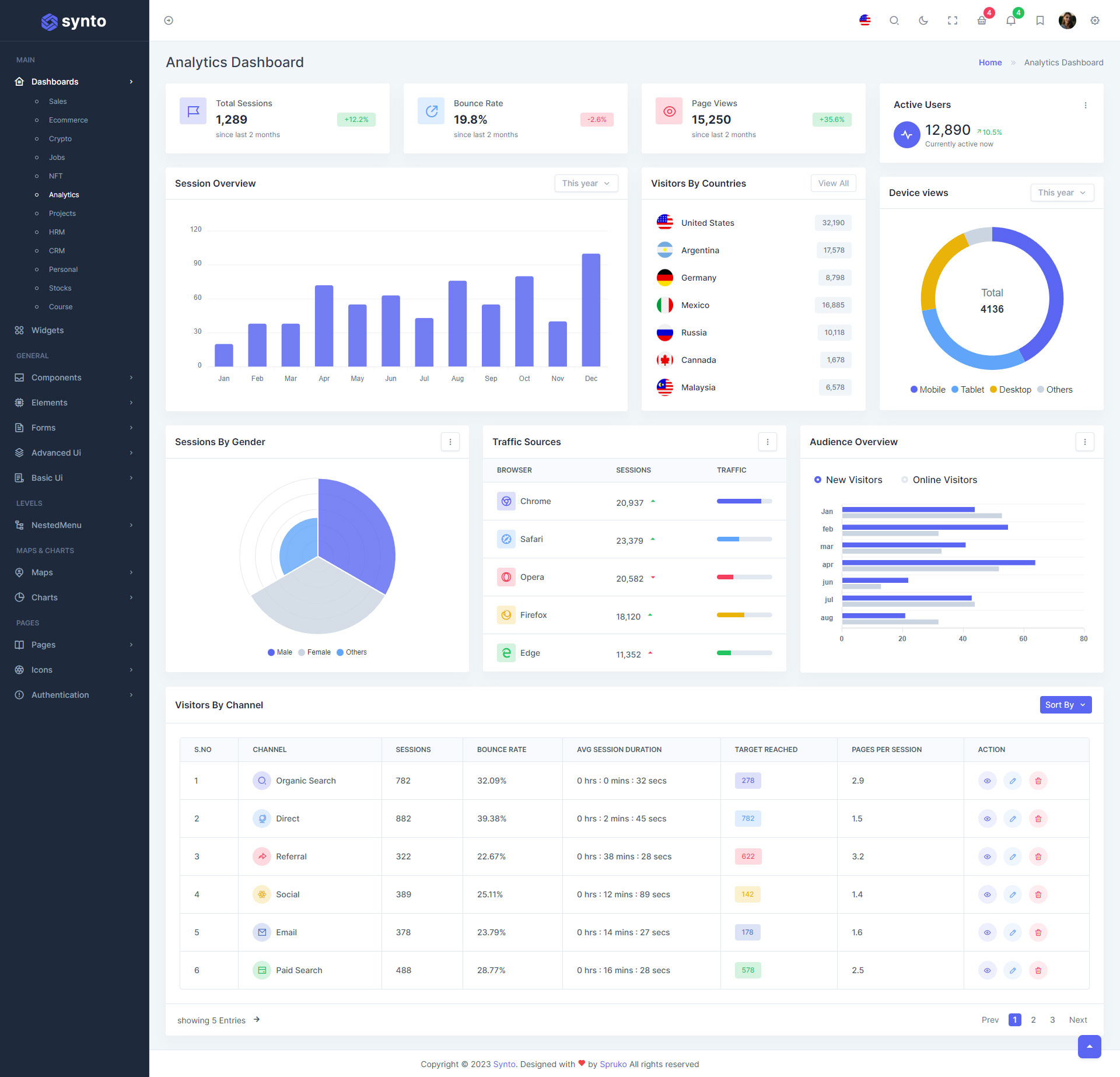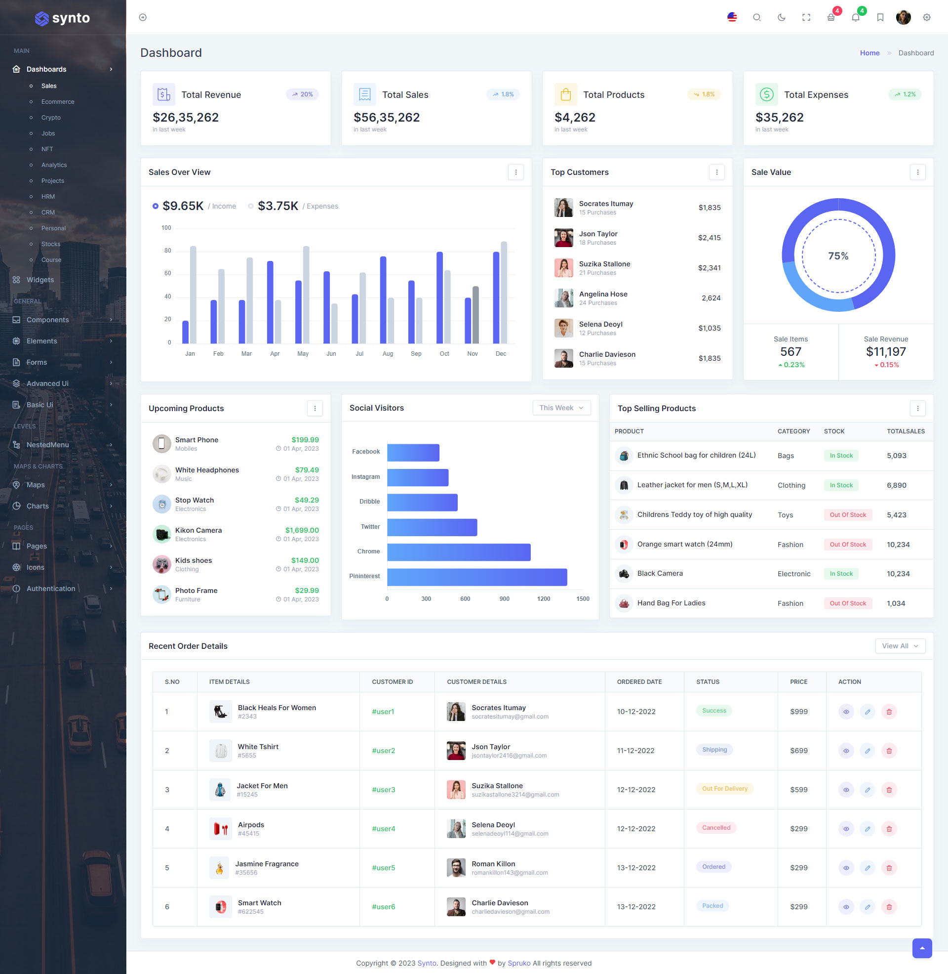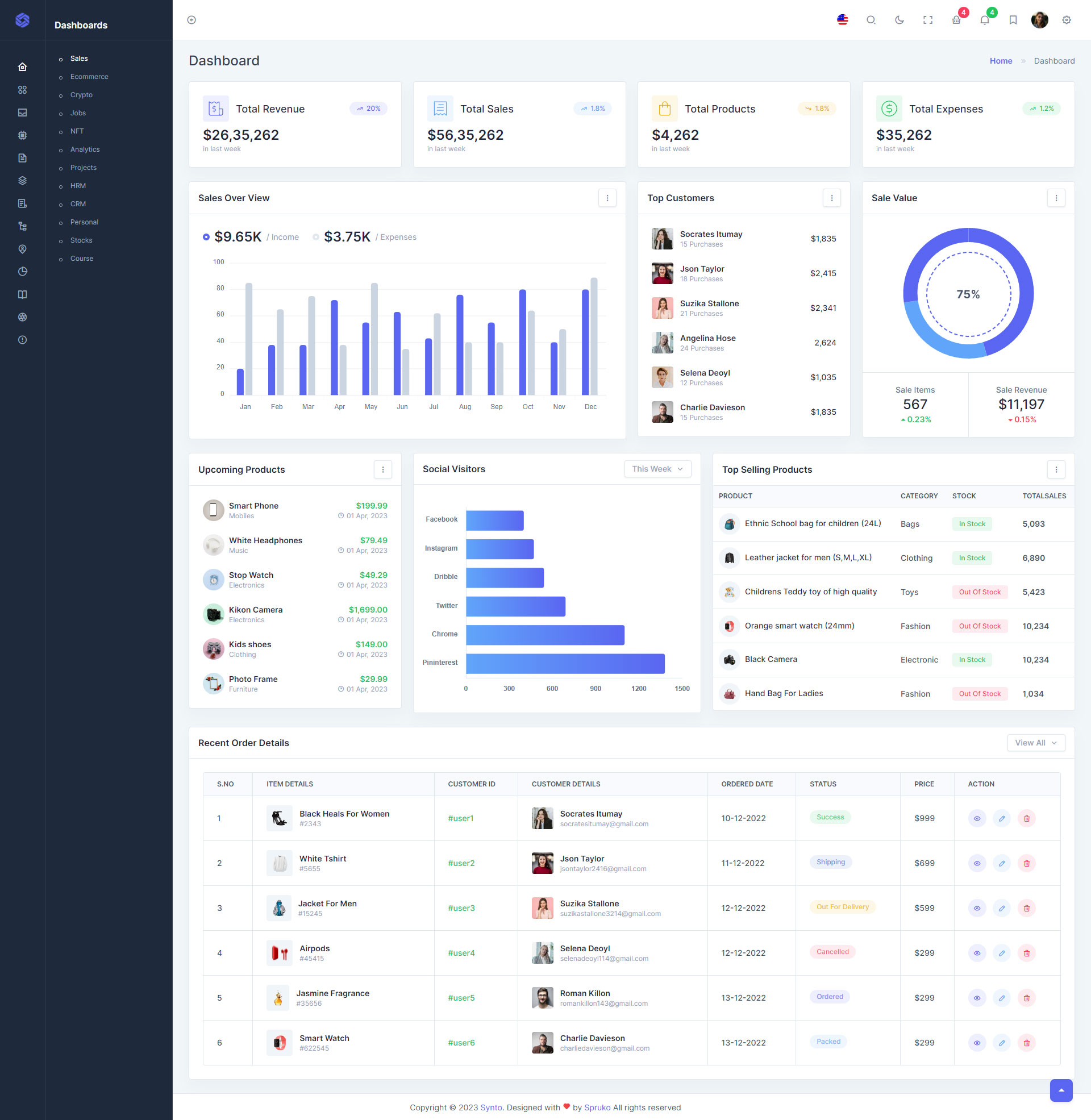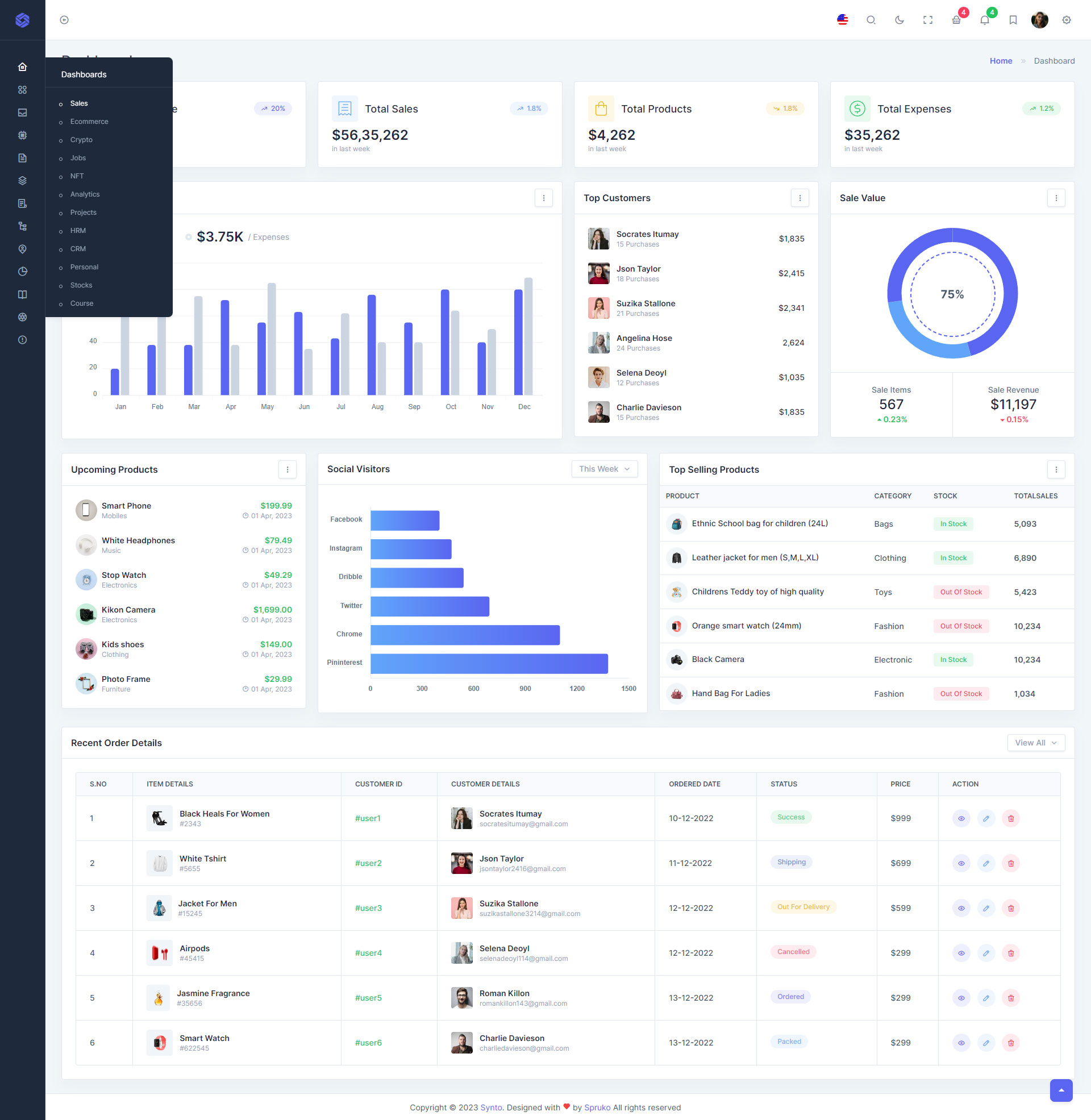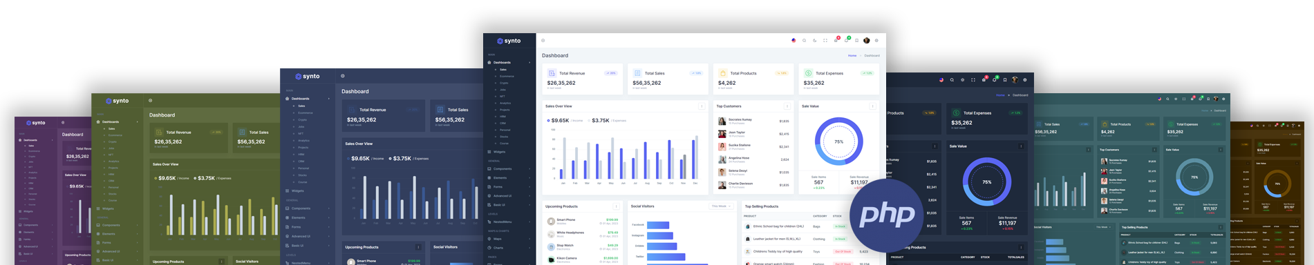Here, Synto 12 beautiful dashboards and comes with different types of themes. So that users can choose their best theme and customize the Synto - PHP Tailwind Admin Template according to their choice.