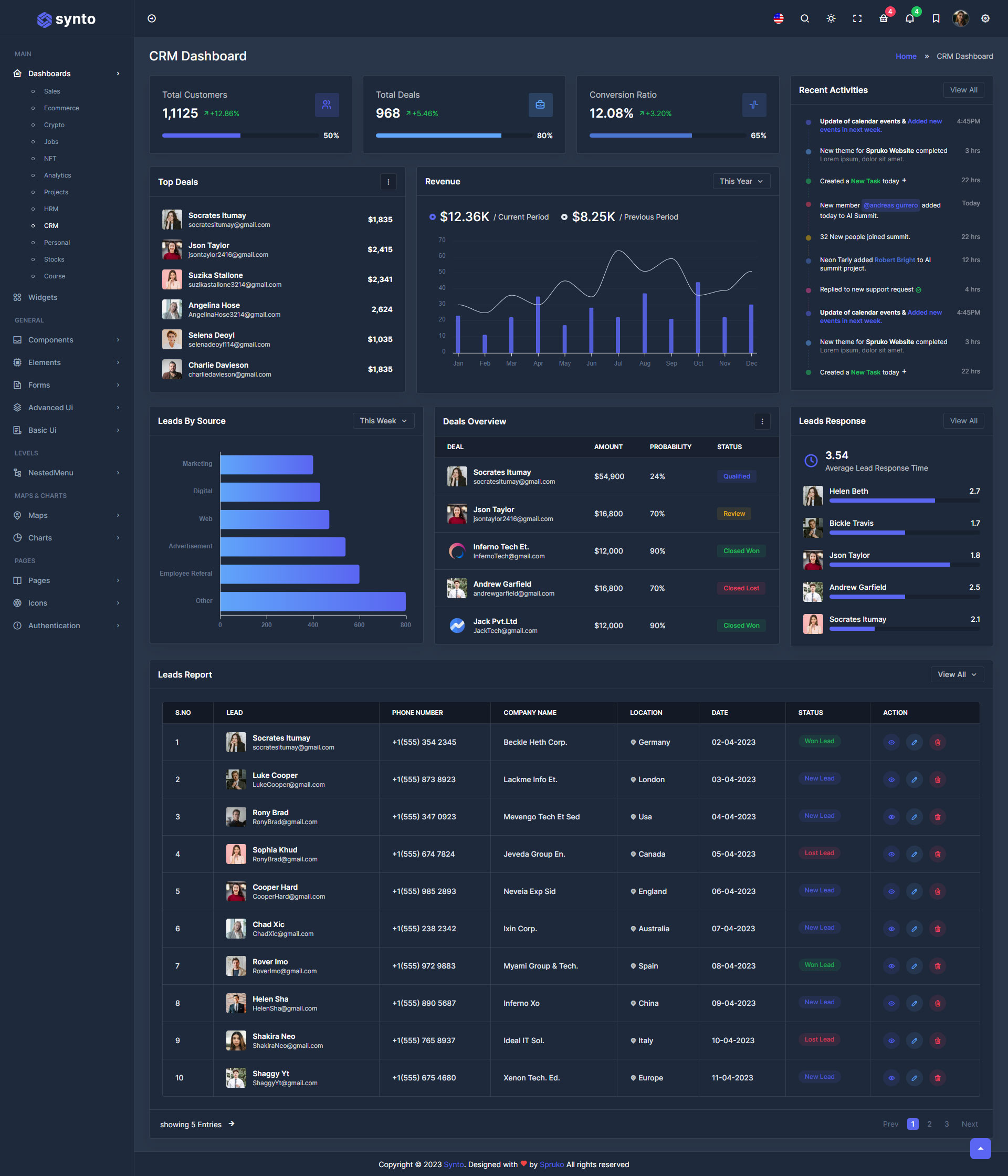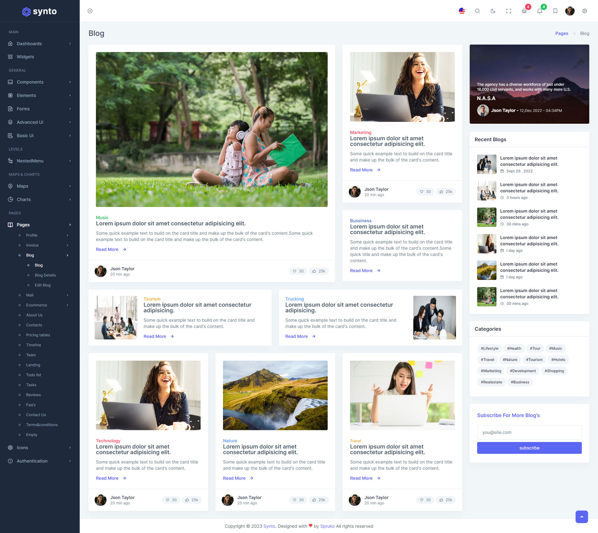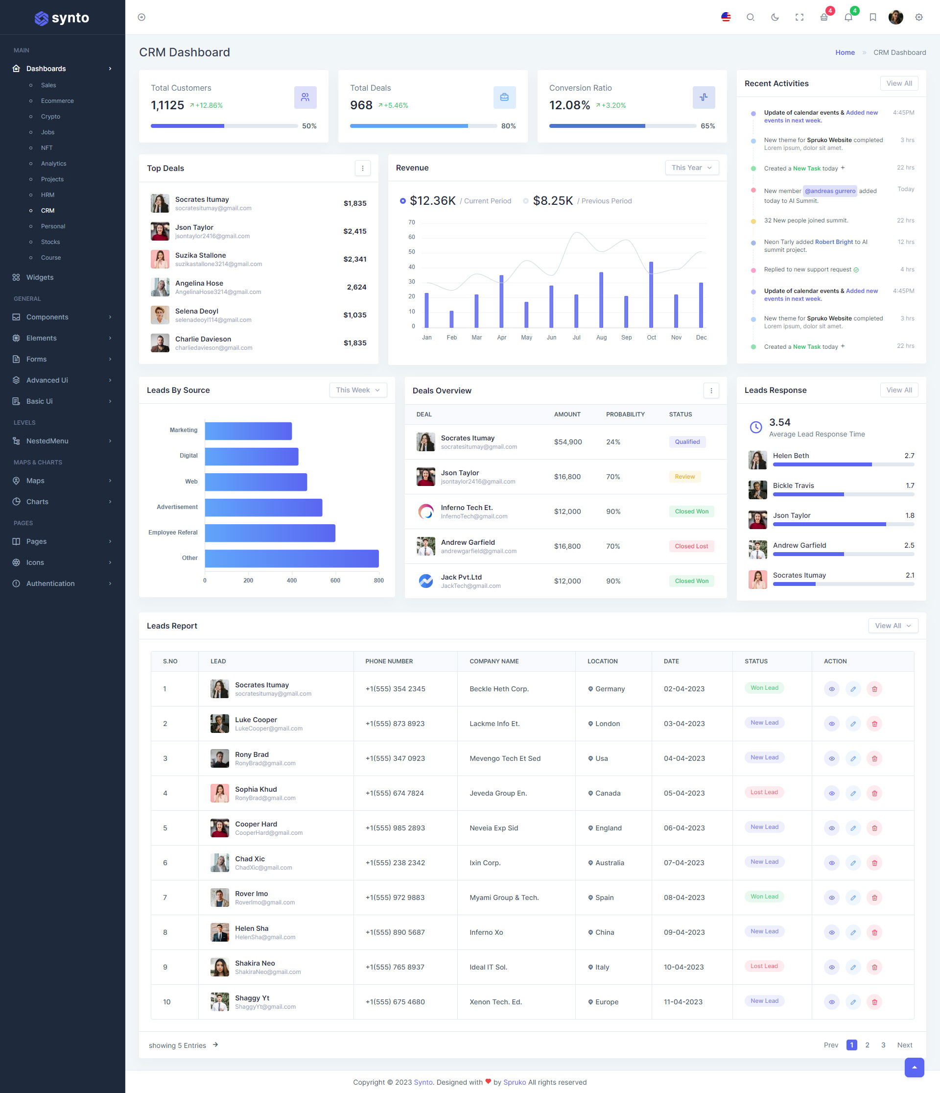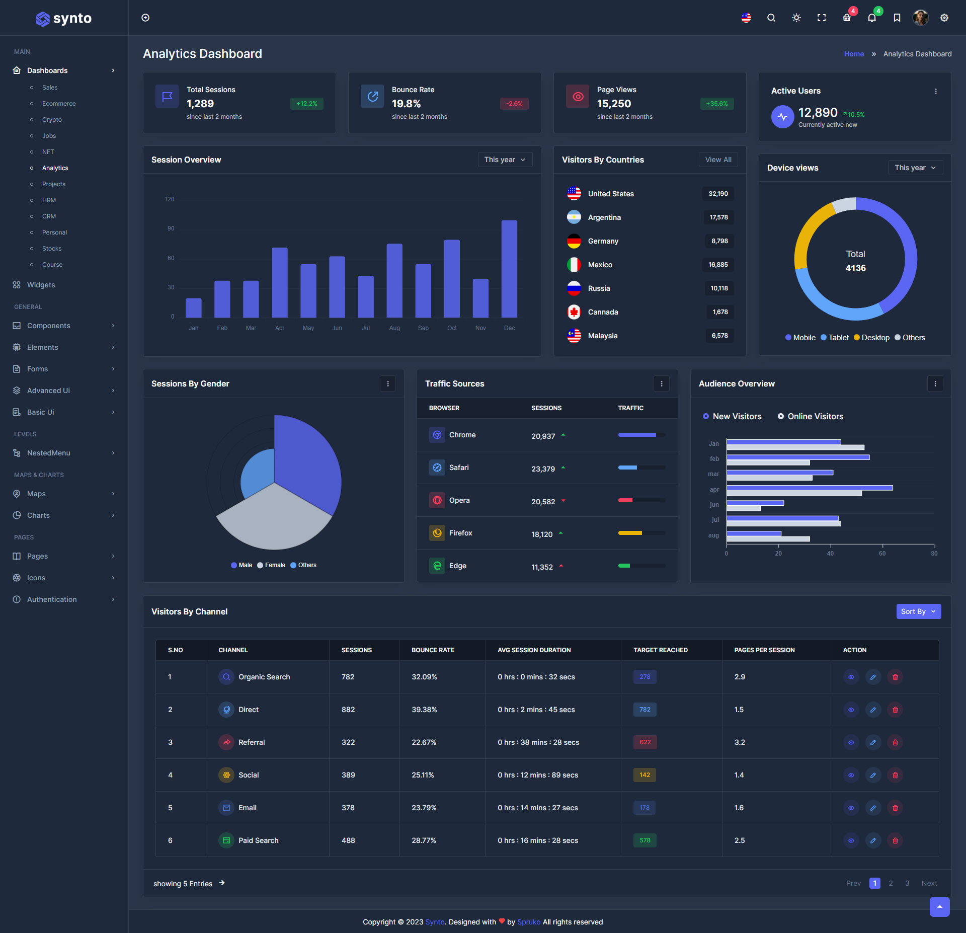 Here, Synto 12 beautiful dashboards and comes with different types of themes. So that users can choose their best theme and customize the Synto - PHP Tailwind Admin Template according to their choice.