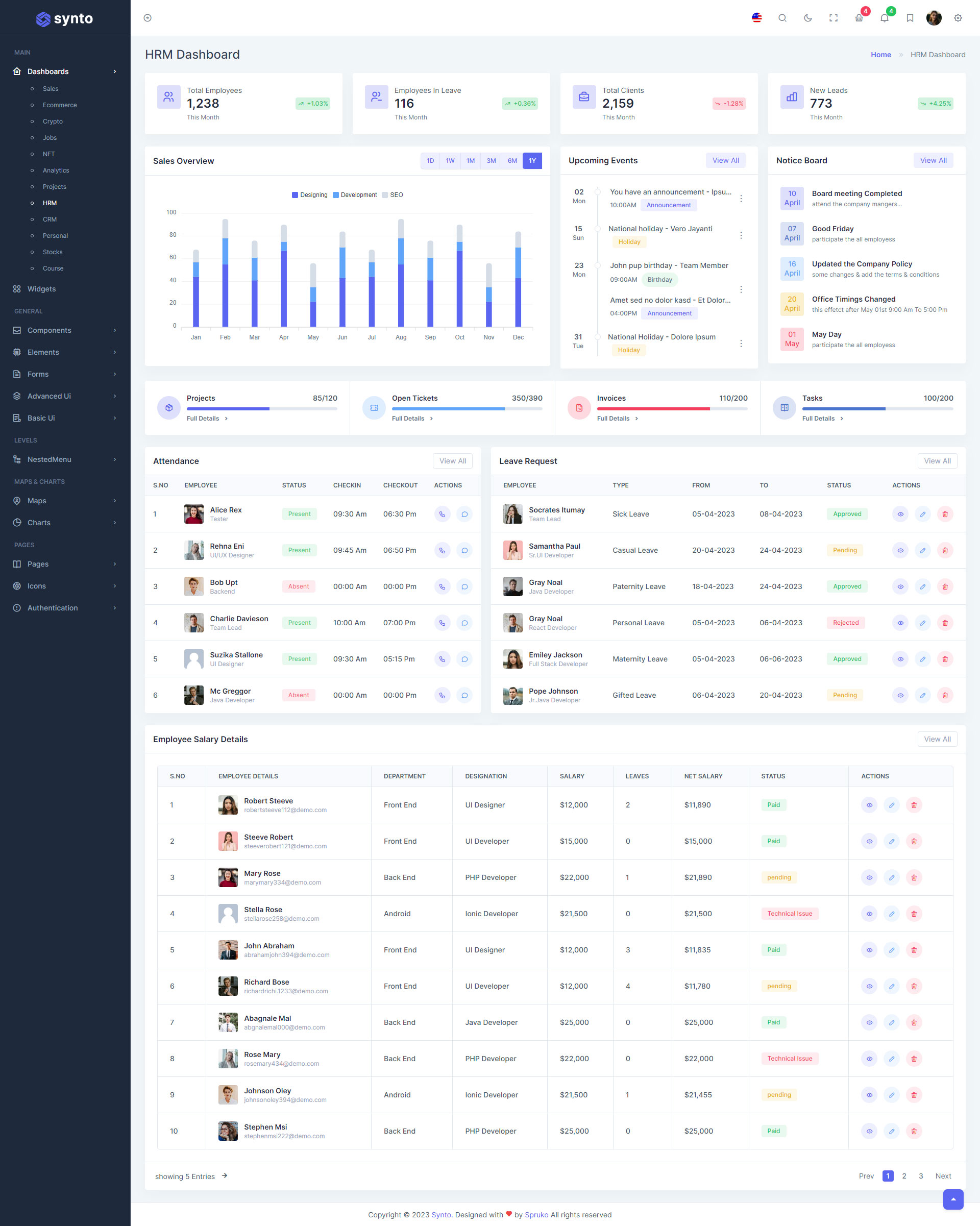 Check out these most trending features that are used in the Synto PHP Admin template that shows how we improved and designed our template. When it came to designing, we keep an eye on the most trending feature..