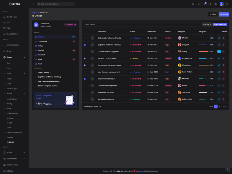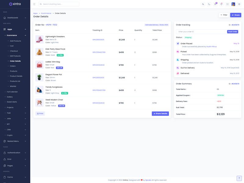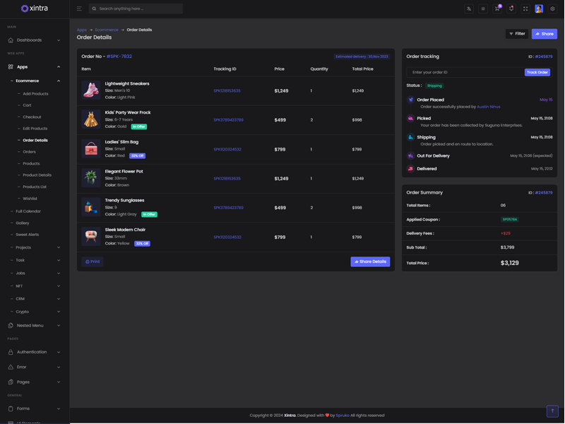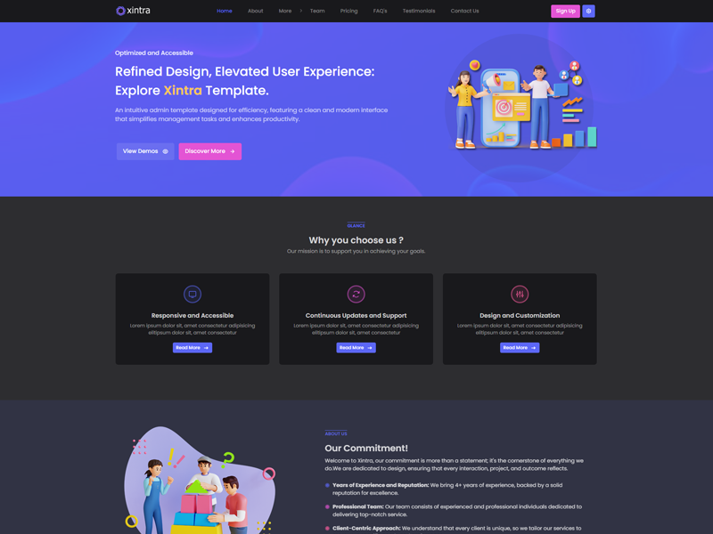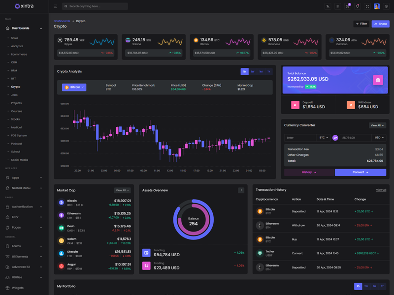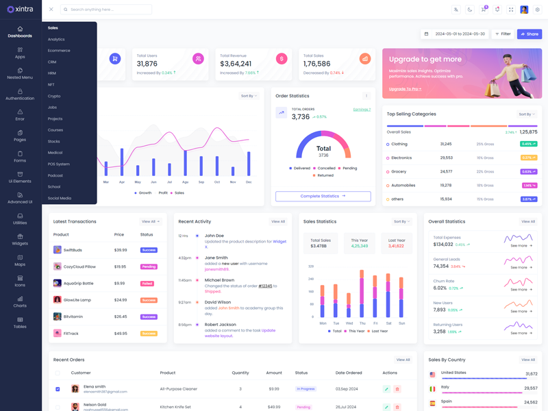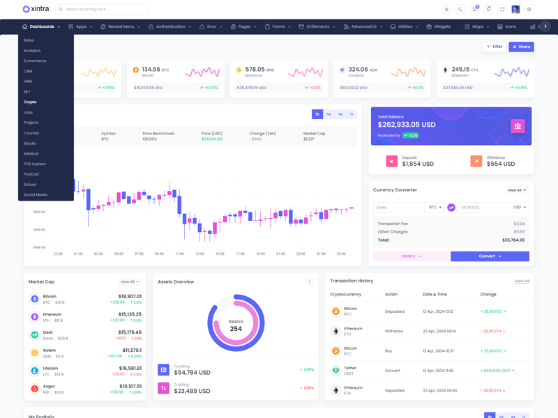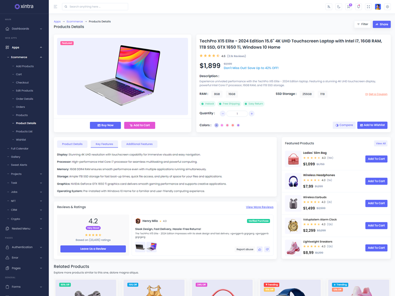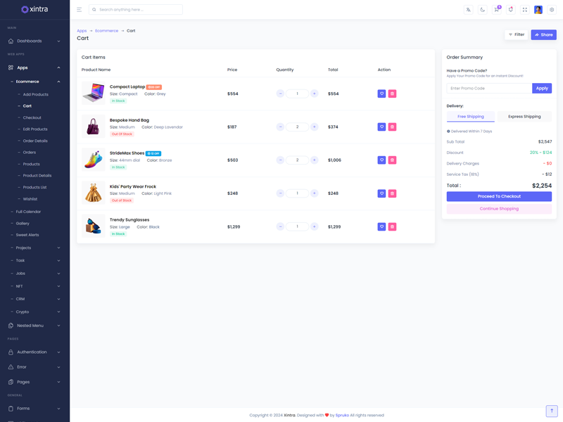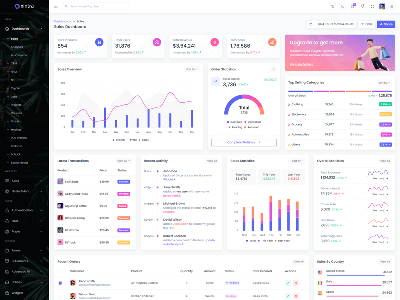 Xintra - Premium Tailwind CSS Admin & Dashboard Template boasts essential features such as design quality, compatibility with your front-end framework, responsiveness, ease of customization, comprehensive documentation, and dedicated support. Additionally, it includes integrated plugins and other supplementary features.
