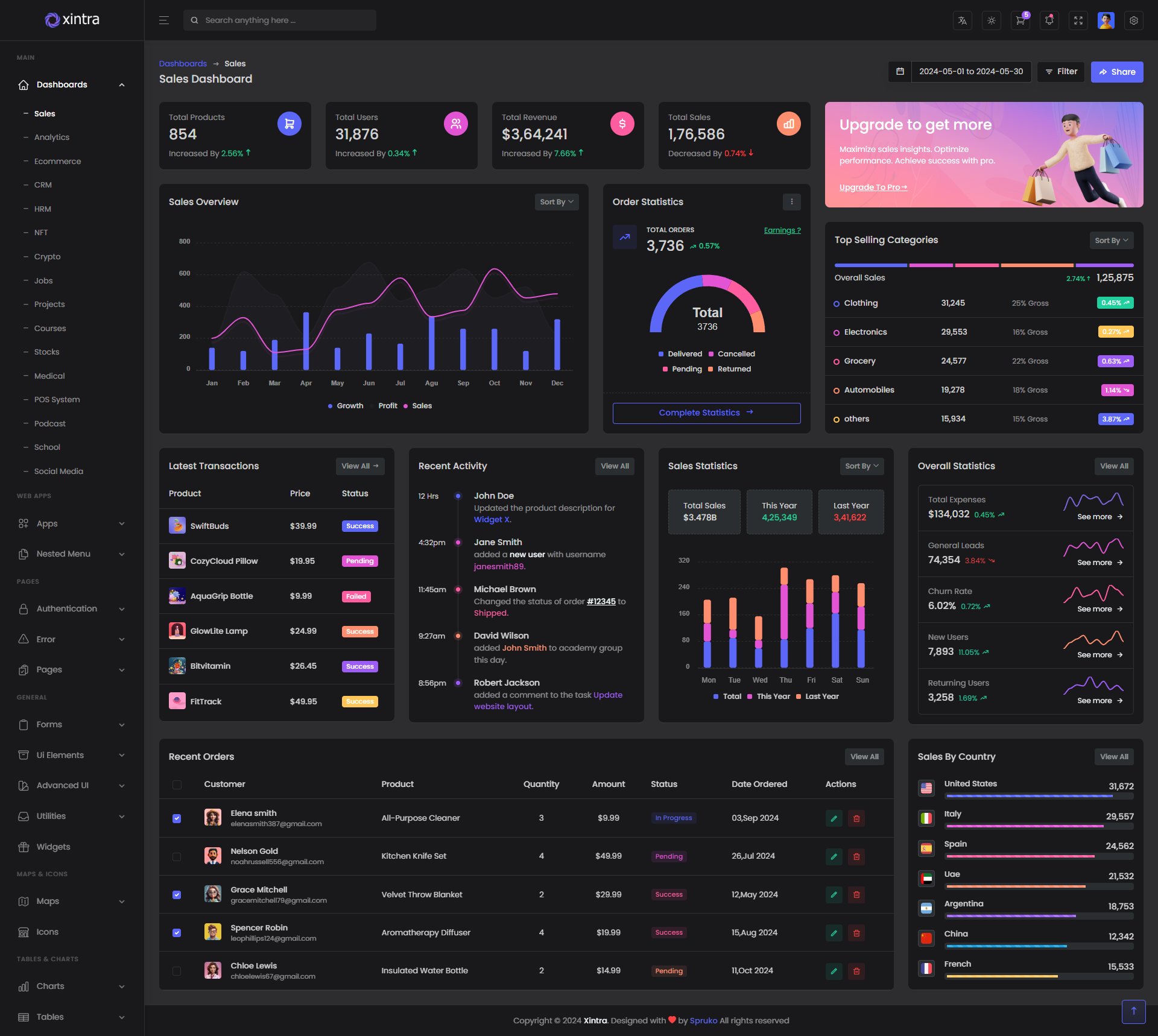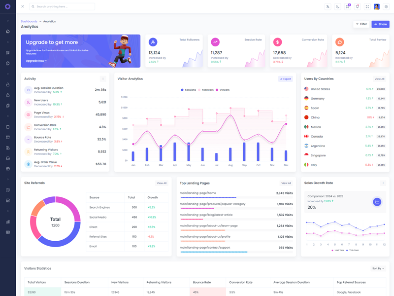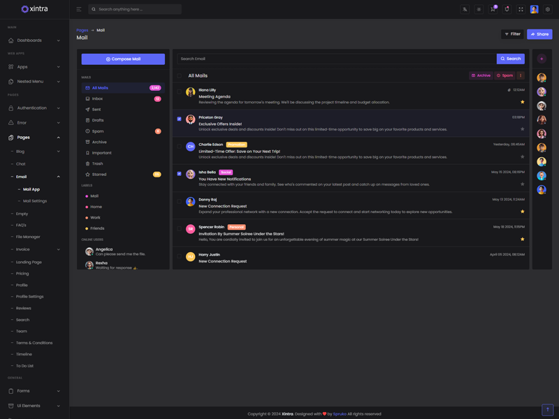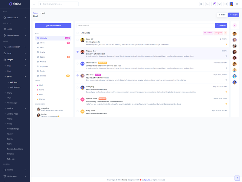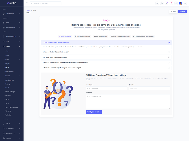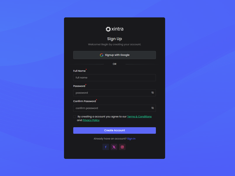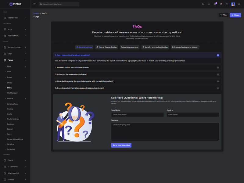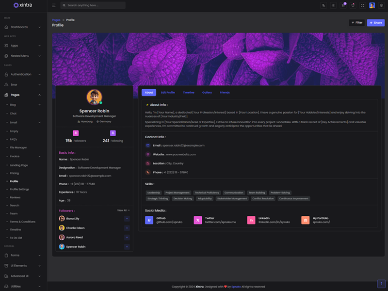 Xintra - Premium Tailwind CSS Admin & Dashboard Template boasts essential features such as design quality, compatibility with your front-end framework, responsiveness, ease of customization, comprehensive documentation, and dedicated support. Additionally, it includes integrated plugins and other supplementary features.