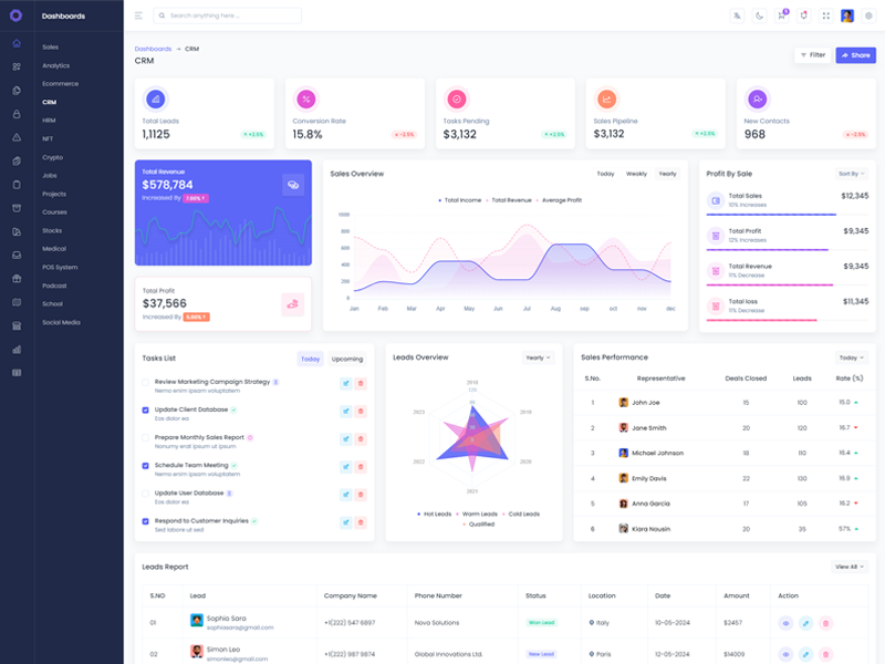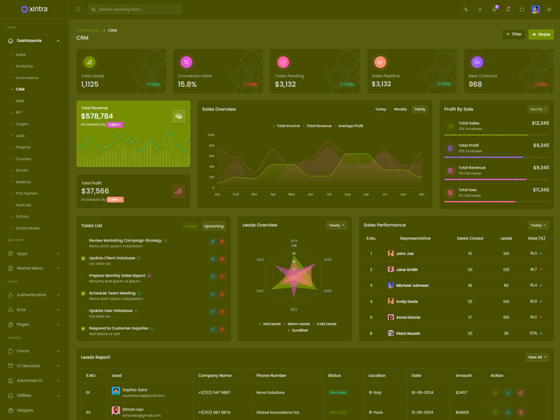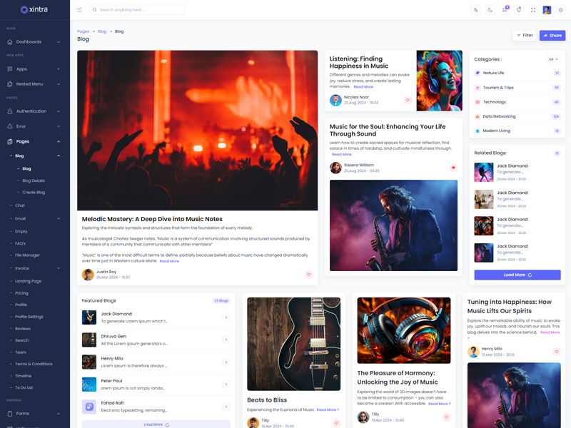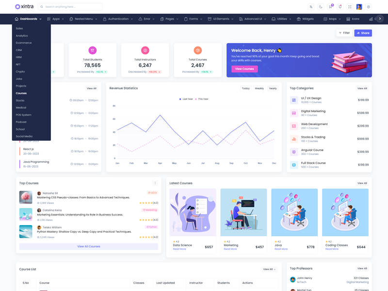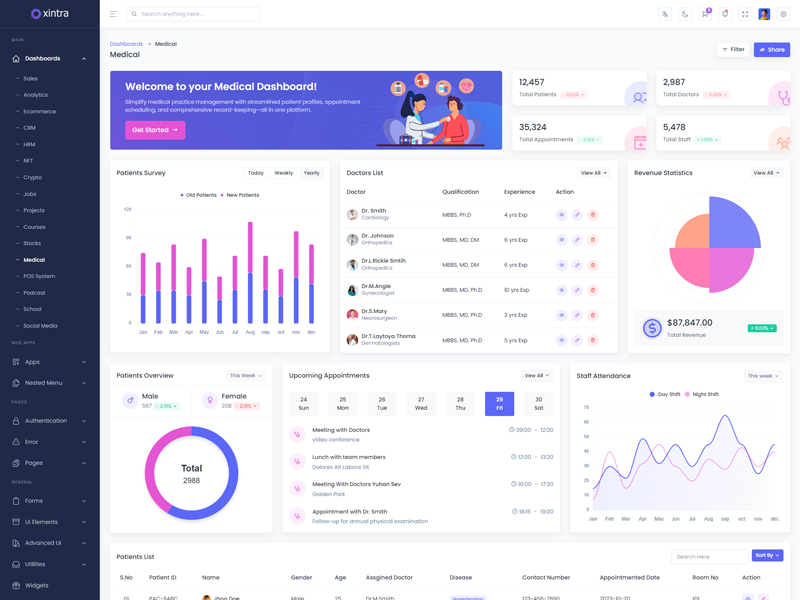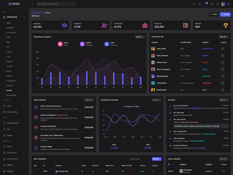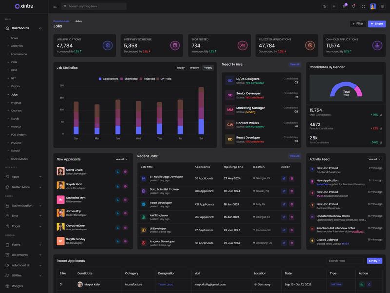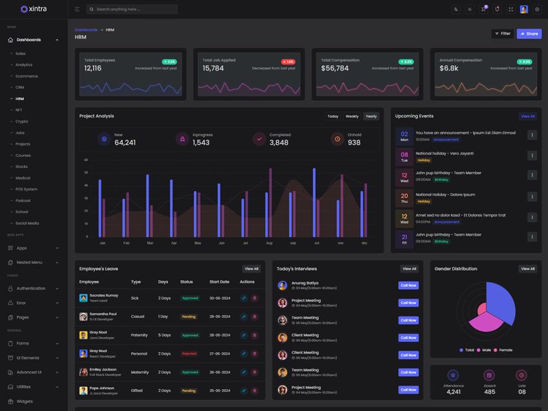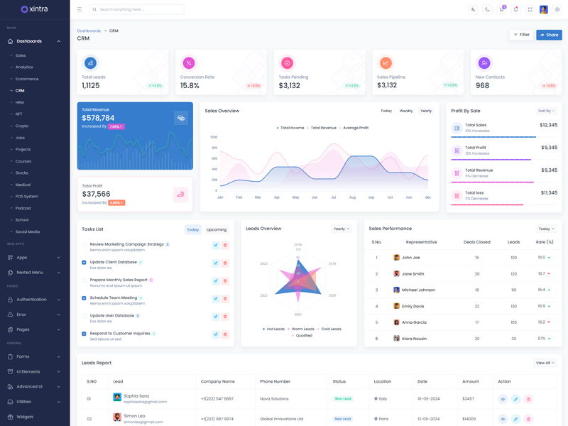 Xintra offers 16 attractive dashboards with various themes for users to customize the PHP Premium Tailwind CSS Admin Template based on their preference.