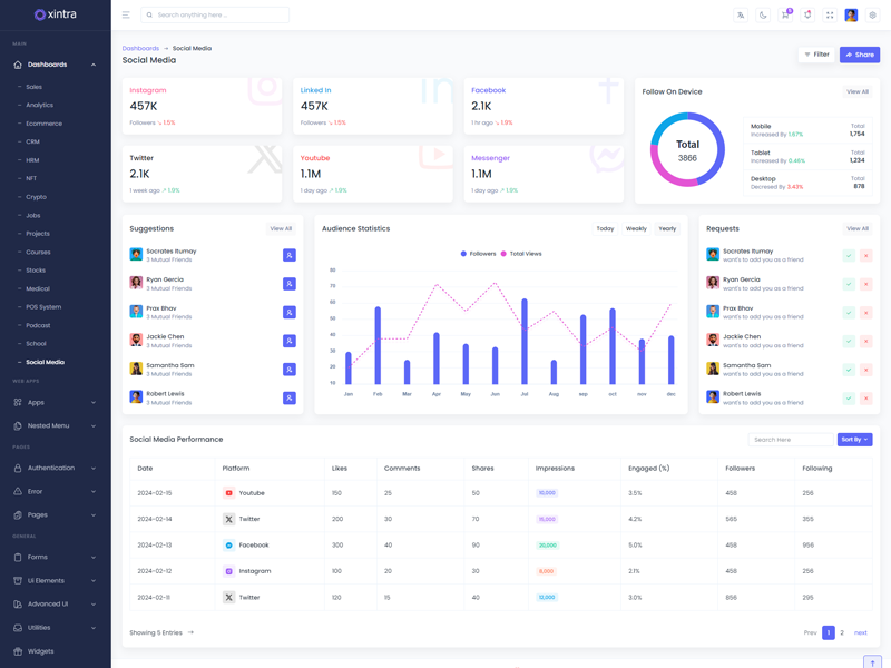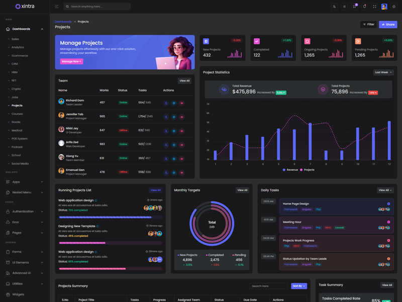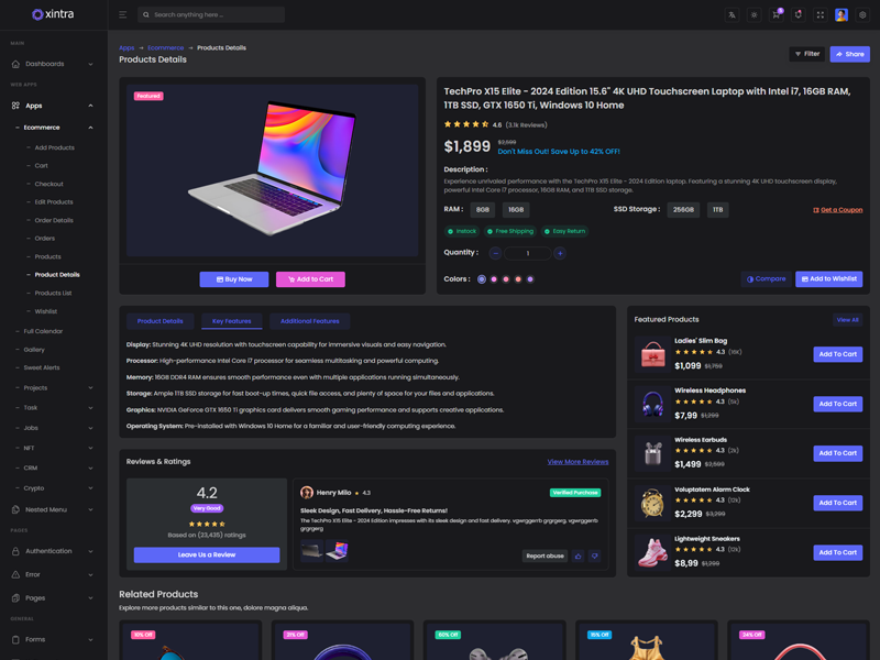 Explore the latest trending features incorporated into the Xintra PHP Tailwind CSS Admin template, showcasing how we have enhanced and designed our template. When it comes to design, we always keep a close watch on the most trending features.