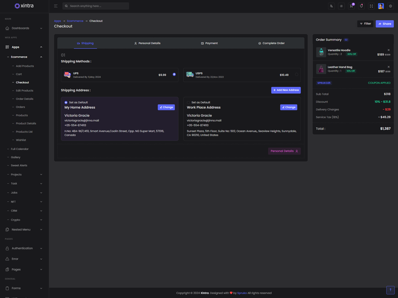 Xintra PHP Tailwind CSS Admin template comes with ready to use features. It has lots of ready-made features saves more time for developers.